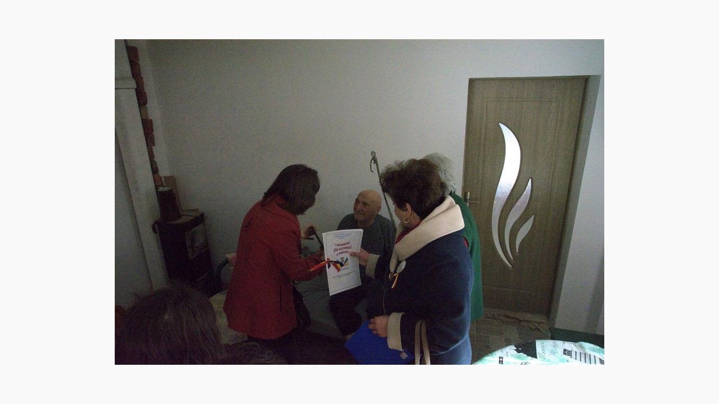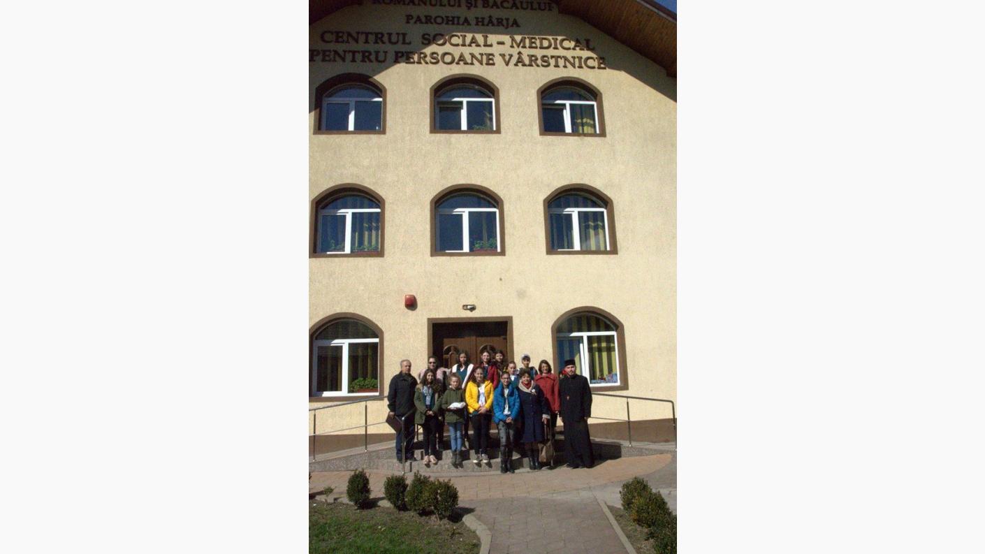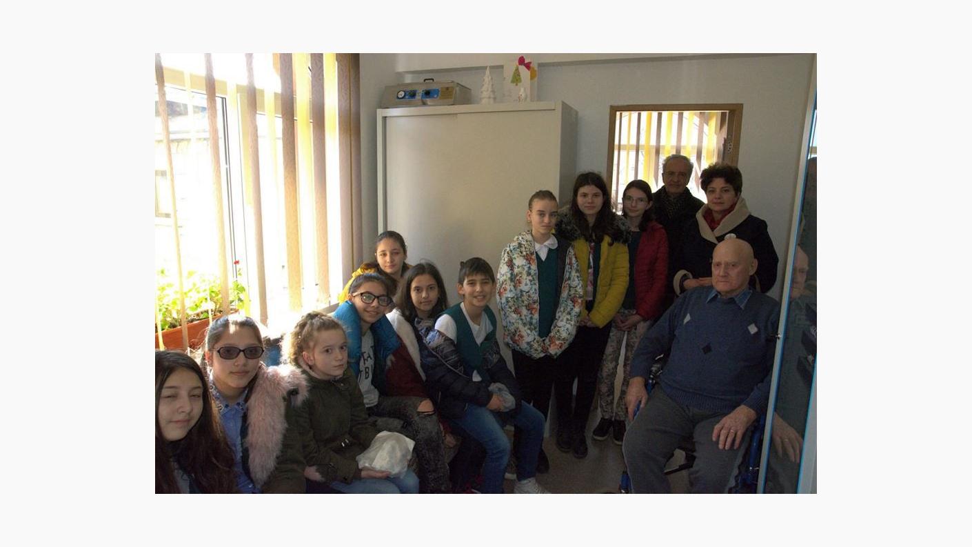 Drumeția s-a continuat cu o vizită la Așezământul Social Filantropic „Sfântul Voievod Ștefan cel Mare - Hârja”, unde psihologul Liliana Pânzaru, le-a făcut cunoștință elevilor cu Nicolae Rogoza, rezident al centrului, veteran de război în vârstă de 96 de ani. Tinerii au fost profund emoționați de această întâlnire, de povestirile de pe front ale bătrânului, dar mai ales de recitarea unor poezii pe tema războiului. La finalul întâlnirii, veteranul a primit din partea celor mici prăjiturile preferate la care nu renunță, în ciuda vârstei înaintate.