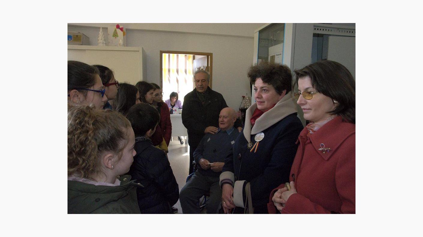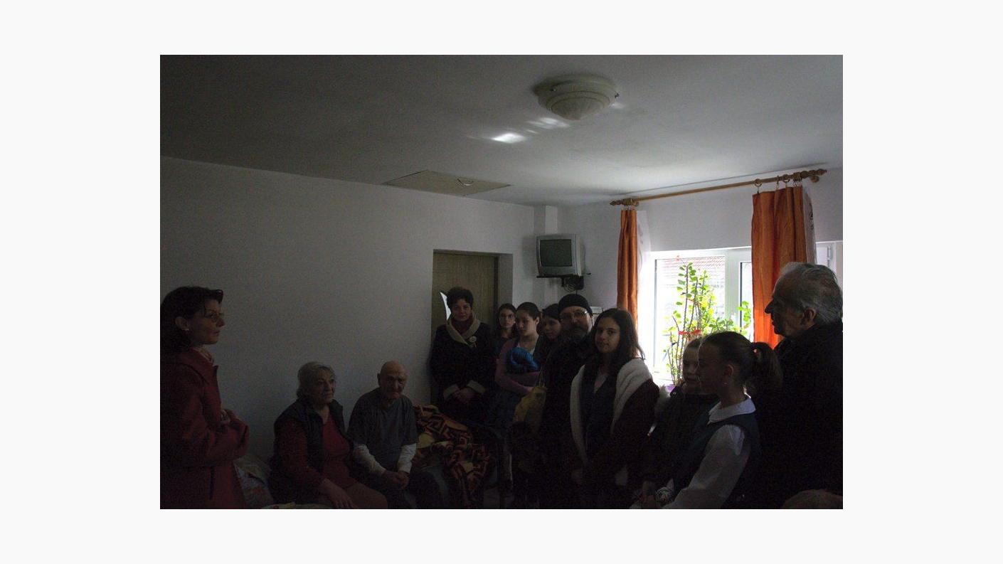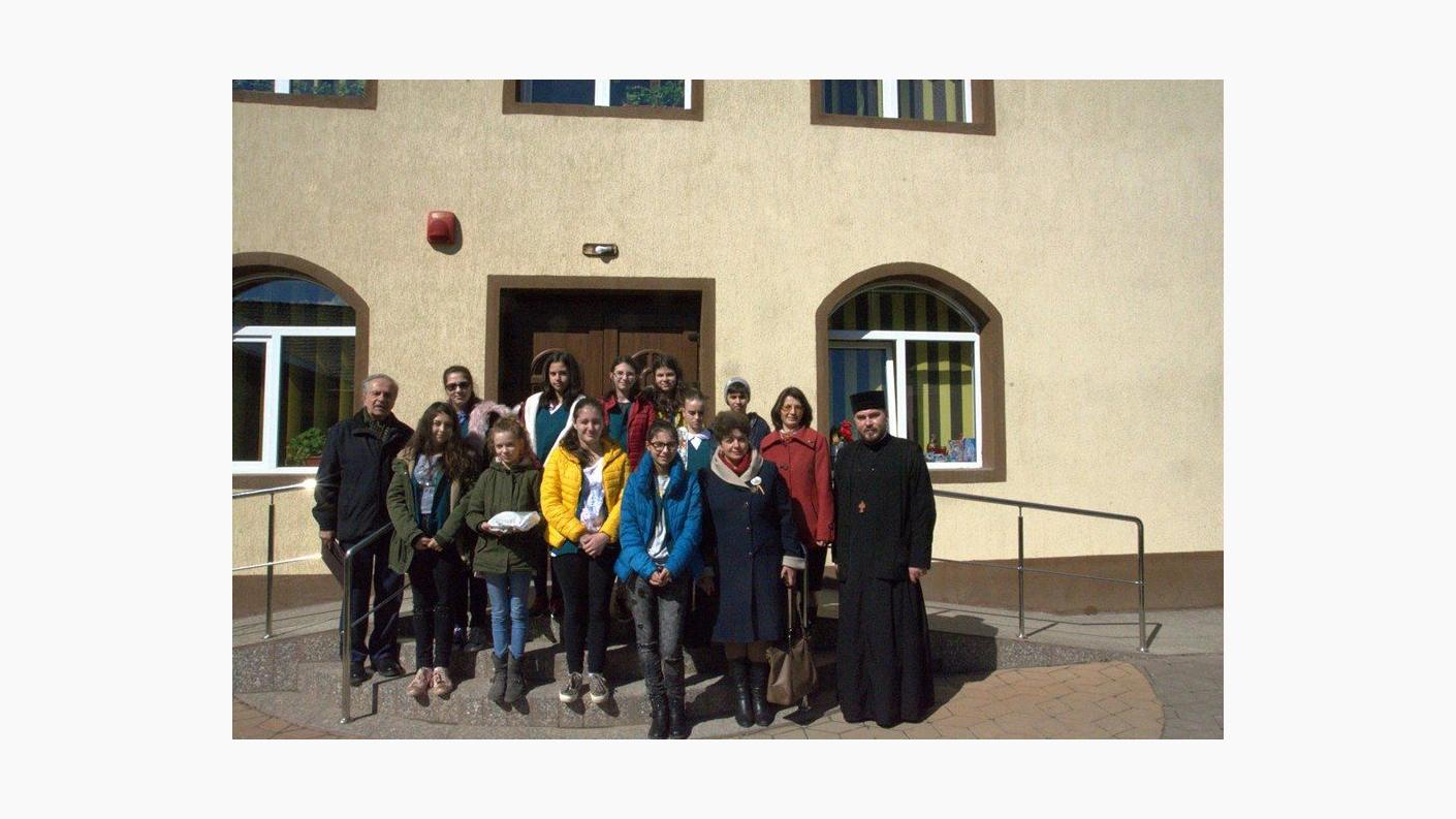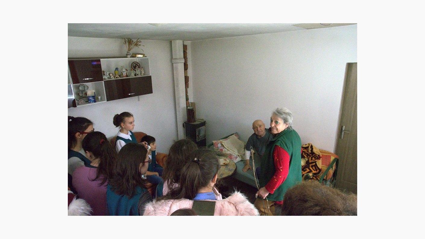 Drumeția s-a continuat cu o vizită la Așezământul Social Filantropic „Sfântul Voievod Ștefan cel Mare - Hârja”, unde psihologul Liliana Pânzaru, le-a făcut cunoștință elevilor cu Nicolae Rogoza, rezident al centrului, veteran de război în vârstă de 96 de ani. Tinerii au fost profund emoționați de această întâlnire, de povestirile de pe front ale bătrânului, dar mai ales de recitarea unor poezii pe tema războiului. La finalul întâlnirii, veteranul a primit din partea celor mici prăjiturile preferate la care nu renunță, în ciuda vârstei înaintate.