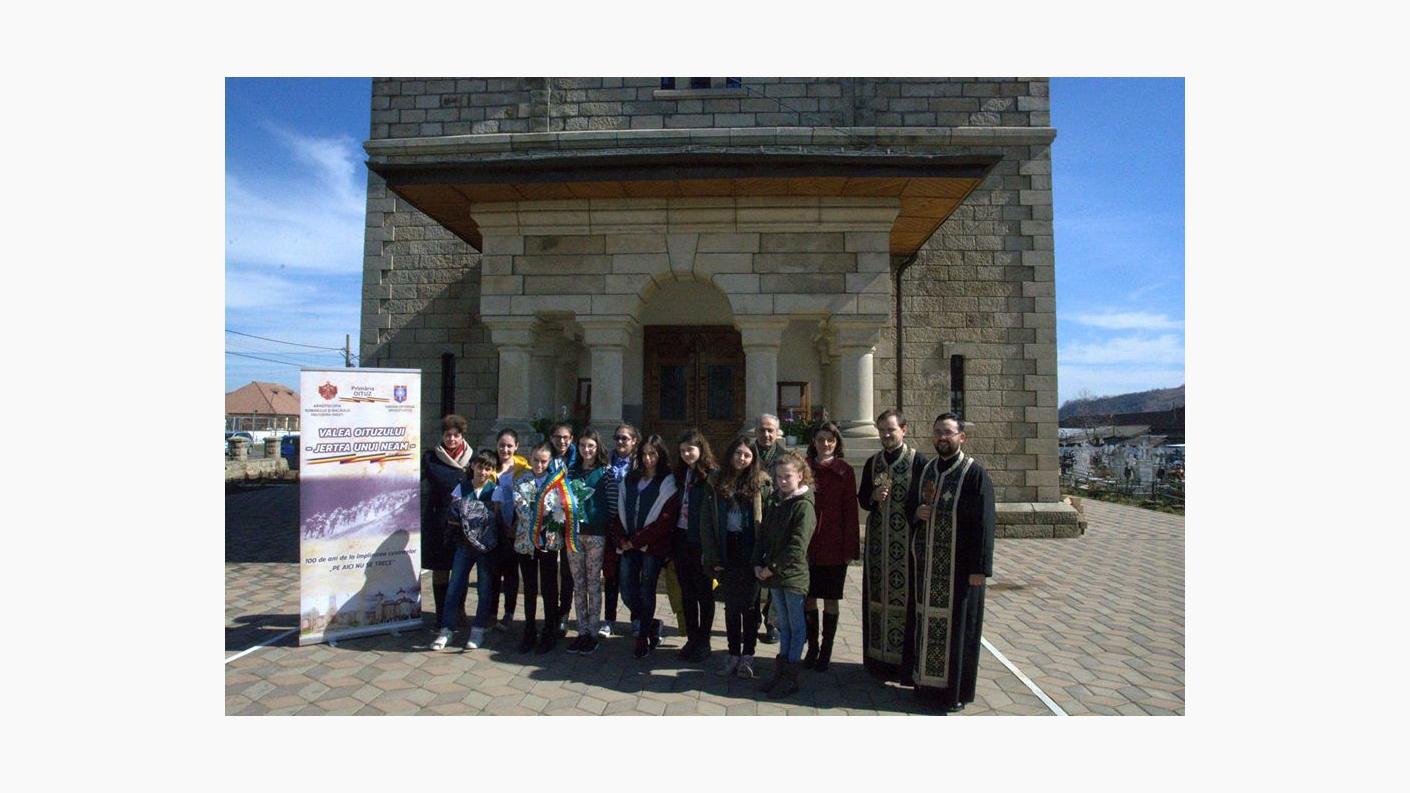 În ziua de vineri, 16 martie, elevii clasei a VI-a B, ai Școlii Gimnaziale „Emil Racoviță, ce fac parte din Grupul Catehetic „Sfânta Filofteia” al Parohiei „Pogorârea Sfântului Duh” din Onești, sub îndrumarea profesorului de religie și istorie Elena Daniela Coșa, a asistentului social Raluca Maria Alupei și a părintelui Alexandru Pânzaru, coordonatorul grupului, au vizitat linia frontului de la Oituz, locuri unde s-au purtat lupte în Primul Război Mondial, cimitirele eroilor și s-au întâlnit cu doi veterani de război.