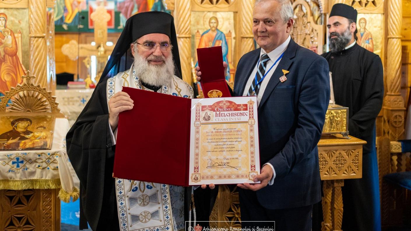 Cu acest prilej, Înaltpreasfințitul Arhiepiscop Ioachim i-a conferit managerului spitalului, domnului prof. univ. dr. Adrian Cotîrleț distincția eparhială „Ordinul Melchisedec”, Clasa I, cea mai înaltă distincție oferită de către Arhiepiscopia Romanului și Băcăului pentru mireni, în semn de mulțumire și considerație, pentru buna colaborare și pentru facilitarea actului religios în această unitate medicală.
