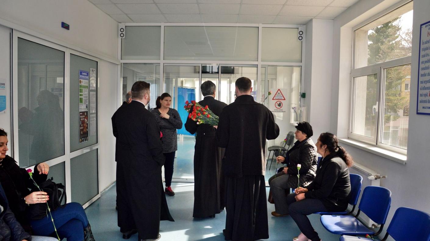 Părintele protoiereu s-a deplasat și la Spitalul Orășenesc „Ioan Lascăr“ din Comăneşti și Spitalul Municipal de Urgență Moinești, unde a oferit cadrelor medicale și tuturor doamnelor internate, cîte o floare și o iconiță cu Maica Domnului.