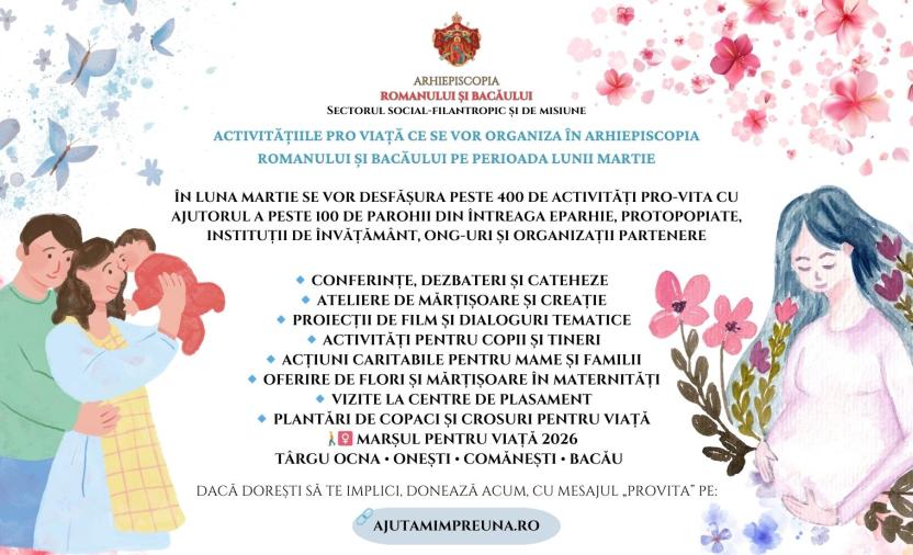 Proiectul social-eparhial Pro Vita „Fiecare om contează”, ediția a II-a – Peste 400 de activități dedicate Lunii pentru Viață, în Arhiepiscopia Romanului și Bacăului