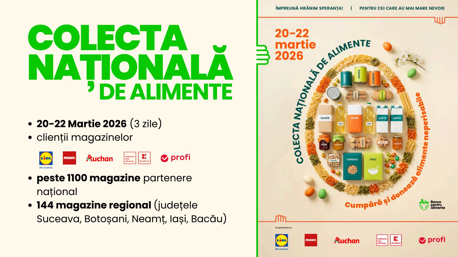 Ediția a XIV‑a a Colectei Naționale de Alimente, desfășurată în perioada 20–22 martie 2026, a adus din nou împreună comunități, voluntari și...