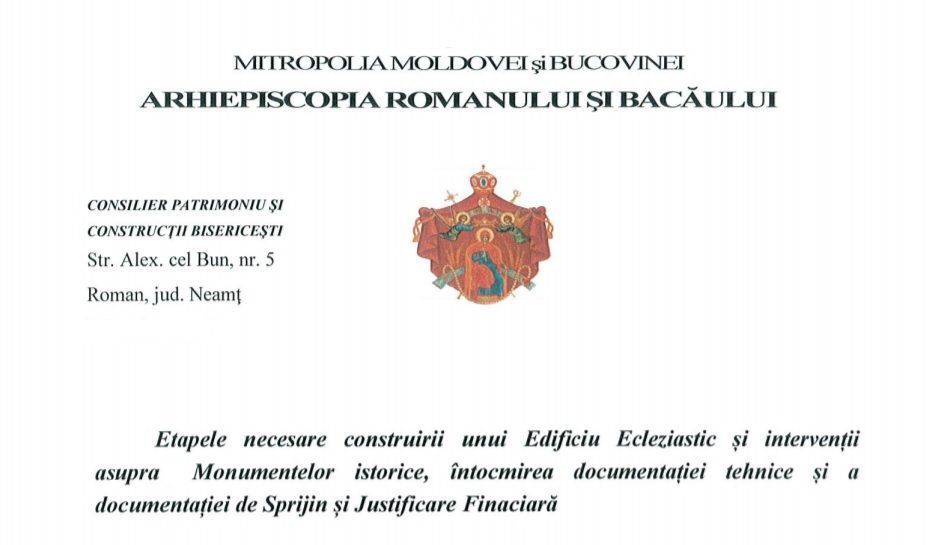 Etapele necesare construirii unui edificiu ecleziastic și intervenției asupra monumentelor istorice