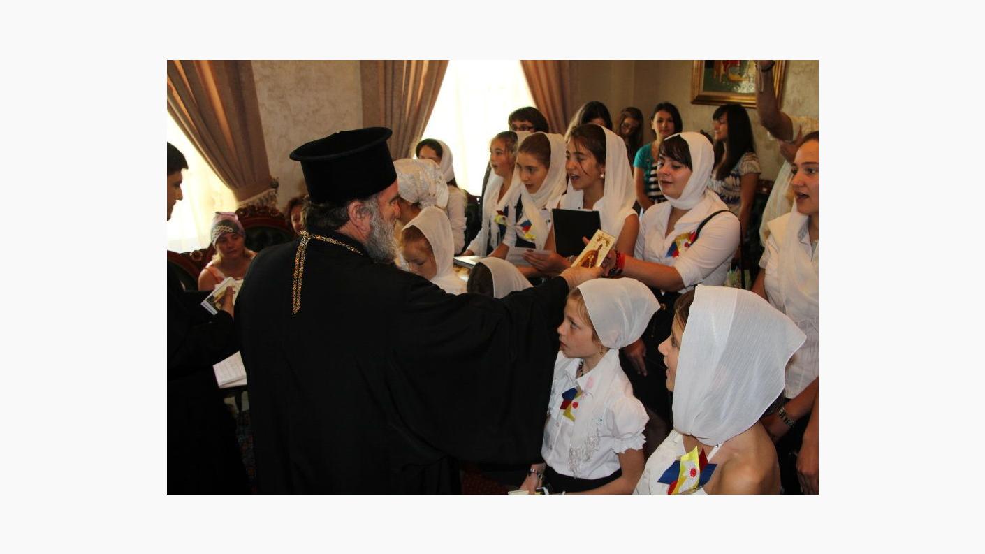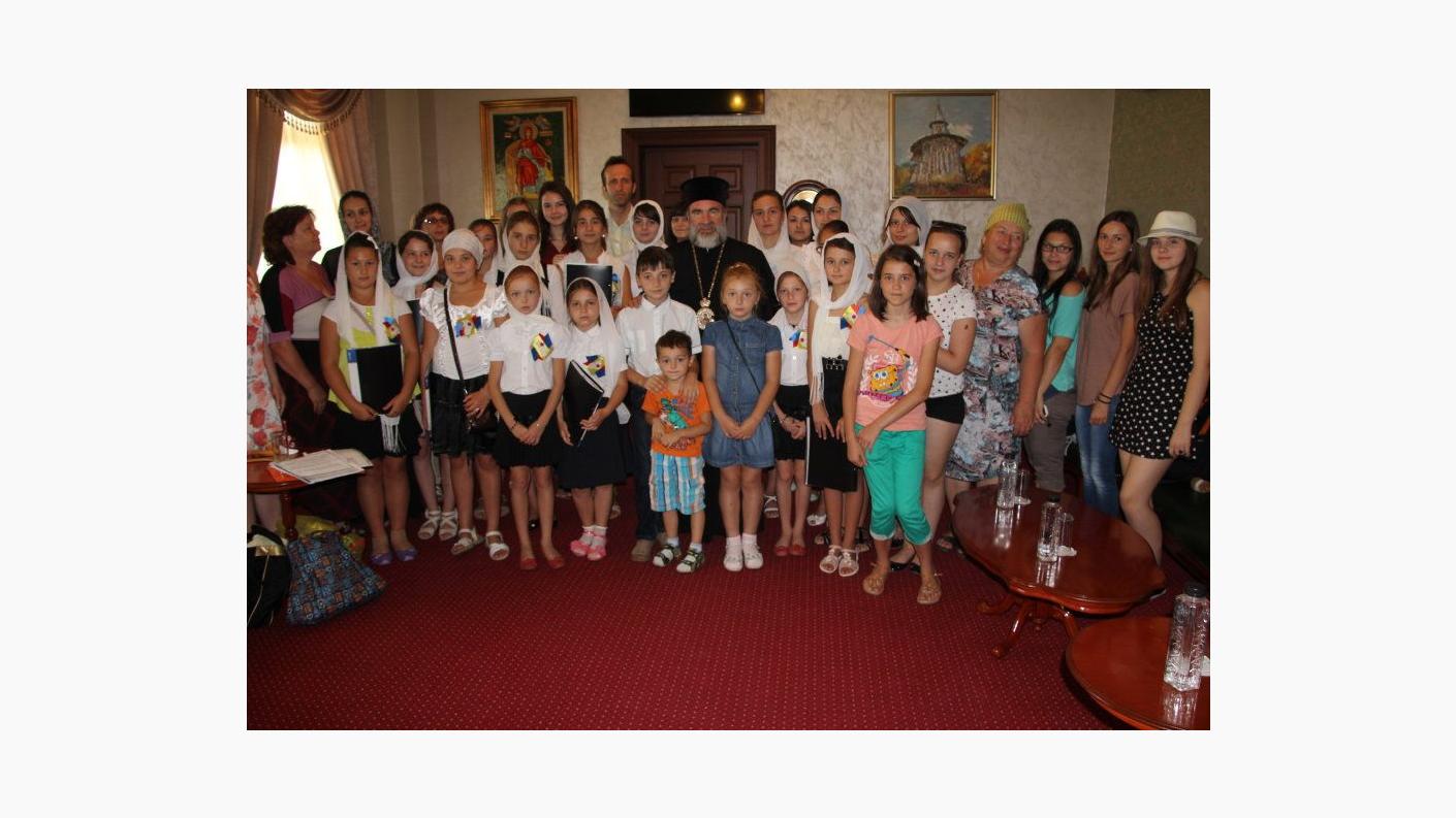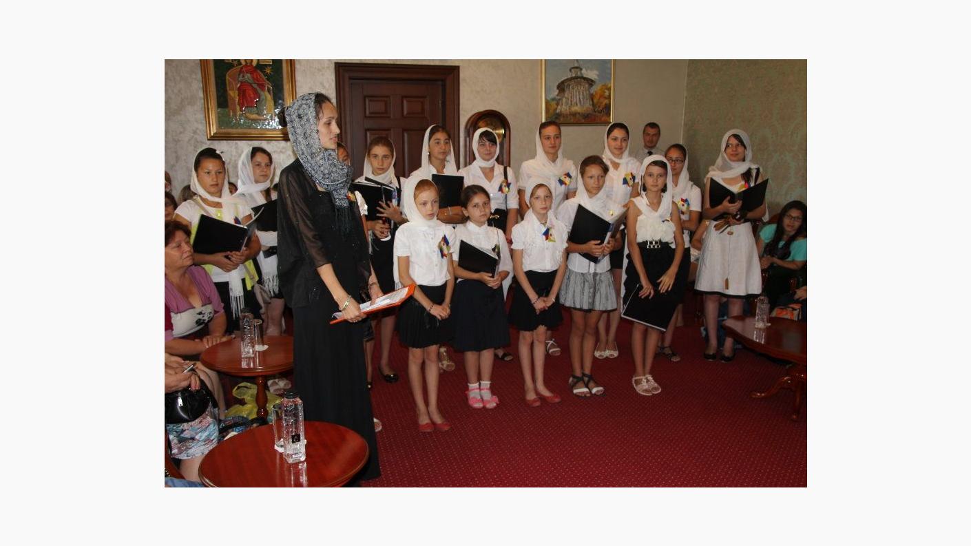 În Catedrala Arhiepiscopală ”Sf. Cuv. Parascheva” din Roman au răsunat astăzi, 1 august, frumoasele cântări religioase, precum și cele patriotice românești, în interpretarea unui grup de 19 copii și patru profesori, sosiți, de dincolo de Prut, de la Liceul Măgdăcești (Raionul Criuleni), pentru prima oară în inima Eparhiei Romanului și Bacăului.