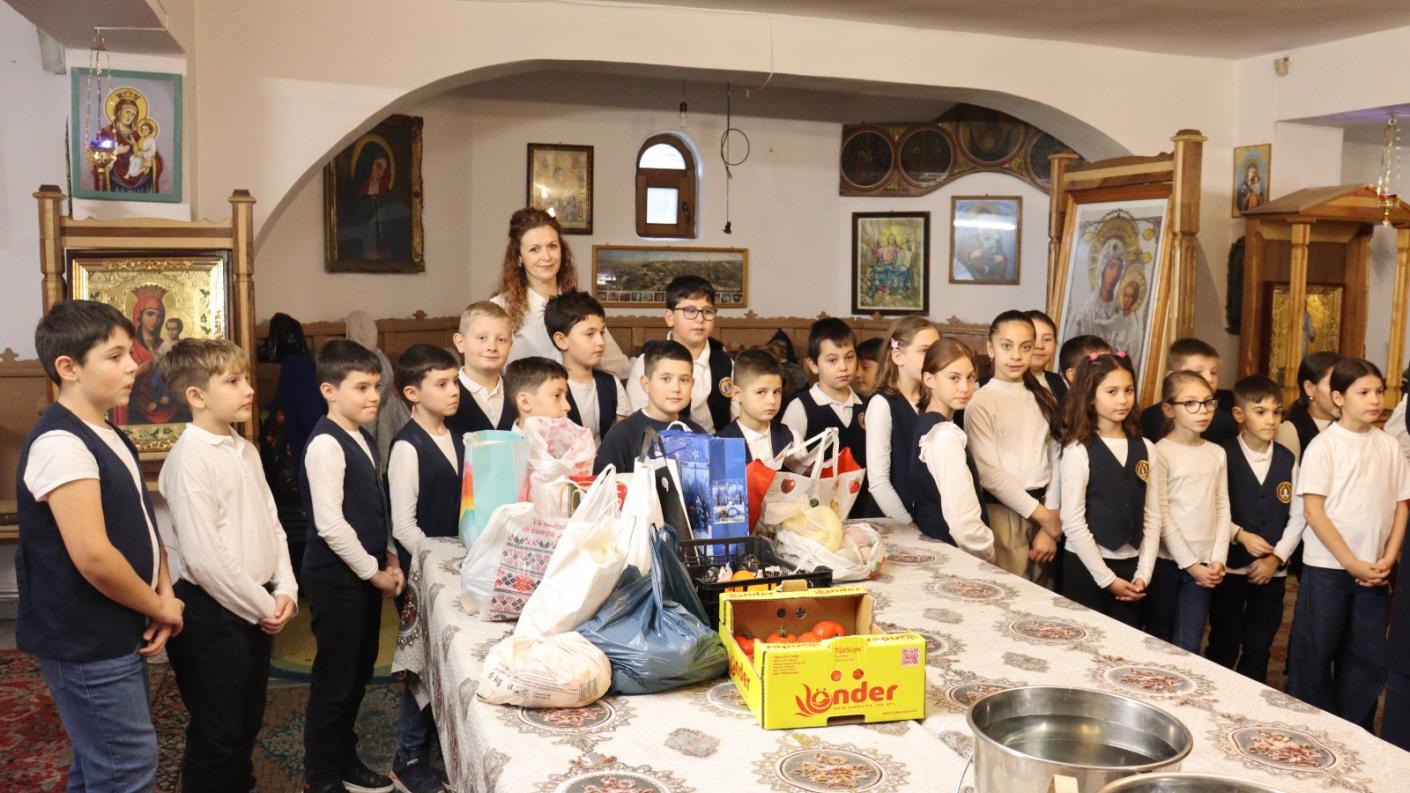 După finalizarea colectei, elevii s-au deplasat la Parohia „Sfântul Arhidiacon Ștefan”, unde au fost întâmpinați de preotul paroh Costinel Milon și de preotul slujitor Neculai Iftime. În biserică s-a oficiat o scurtă slujbă de binecuvântare și mulțumire, după care părintele paroh a adresat copiilor un cuvânt cald de bun venit, mulțumire și încurajare, subliniind valoarea faptelor de milostenie și importanța continuității lor de-a lungul întregii vieți. Părintele a remarcat, totodată, că mulți dintre elevi sunt deja familiarizați cu spațiul eclezial, participând la activitățile catehetice ale parohiei și la școlile de vară organizate anual.
