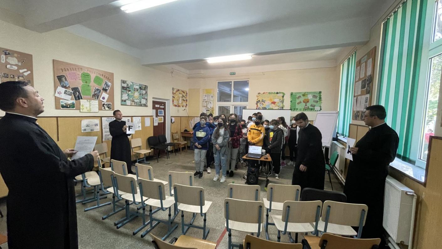 Tema cu titlul „Tăcerea favorizează bullyingul, strigă tare împotriva violenței” s-a adresat elevilor claselor V – VIII și a fost prezentată de către părintele protopop Eugen-Ciprian Ciuche și părintele Ciprian Olteanu.
