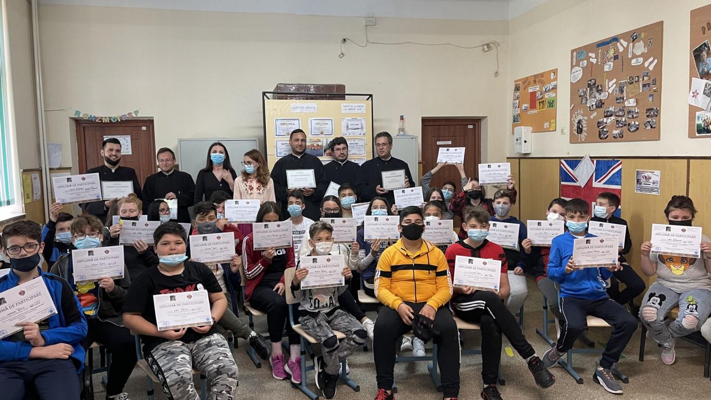 La sfârșit, pentru participarea și implicarea elevilor în această activitate, doamna director i-a felicitat și i-a răsplătit cu diplome, același gest de mulțumire și recunoștință fiind îndreptat și către preoții care au susținut activitatea.