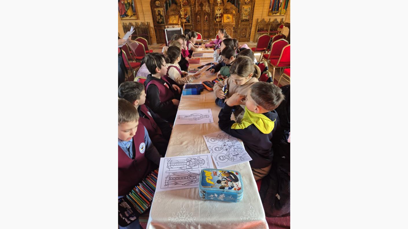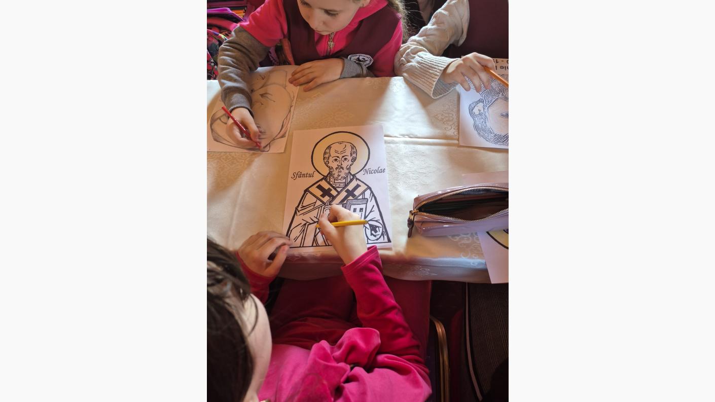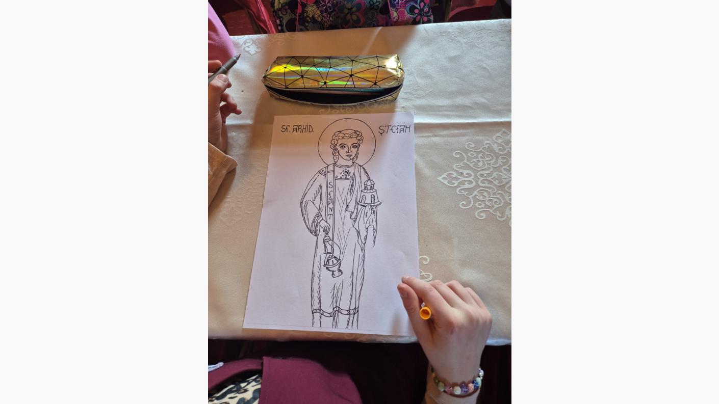 În a treia parte a catehezei, a urmat un atelier de creație prin care copiii și-au demonstrat creativitatea de a desena și colora chipuri de sfinți despre care s-au și discutat aspecte și minuni din viata lor, considerați prin excelență dascăli ai rugăciunii.
