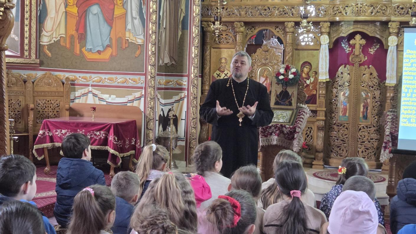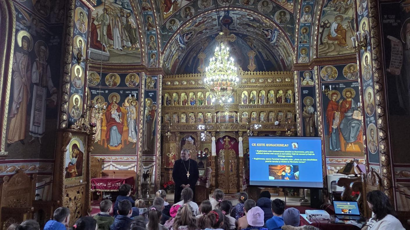 Folosind mijloace multimedia și un limbaj adaptat vârstei copiilor, părintele Răzvan Colpoș a susținut cateheza cu tema „Rugăciunea în familie și importanța participării familiei creștine la Sfânta Liturghie și la viața liturgică a Bisericii”. Activitatea a subliniat rolul rugăciunii în viața de familie și atenția pe care Biserica o acordă tinerilor, cultivând în ei inocența, sinceritatea, curajul și dorința de înnoire.