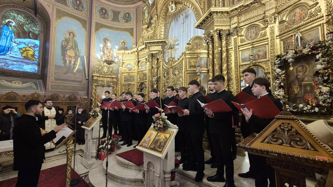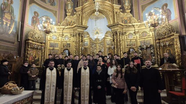 Cu binecuvântarea Înaltpreasfințitului părinte Ioachim, la finalul slujbei Sf. Maslu, după realizarea unei activități filantropice, elevi ai Liceului de Arte „George Apostu” Bacău și ai Liceului Teologic „Episcop Melchisedec” Roman au colindat comunitatea catedralei vechi din municipiul Bacău.