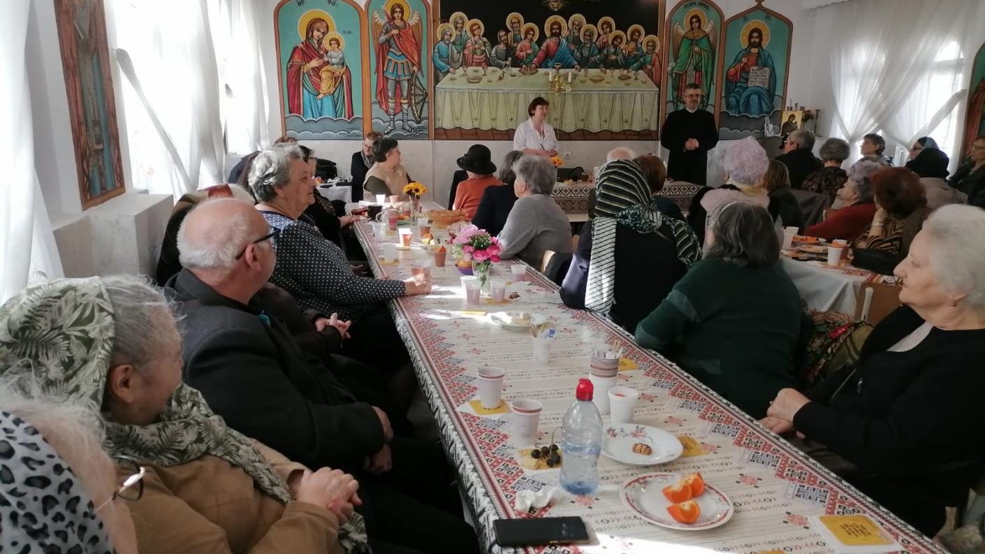 Activitatea, ca de obicei, a început cu participarea seniorilor la Sfânta Liturghie, după care aceștia s-au retras în casa praznicală, alături de părintele paroh Abageru Constantin și asistentul social Carla Pișcu.
