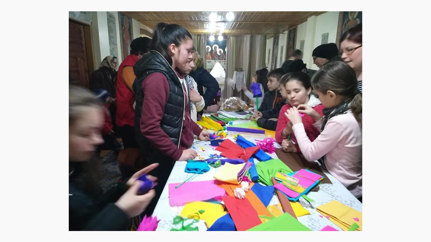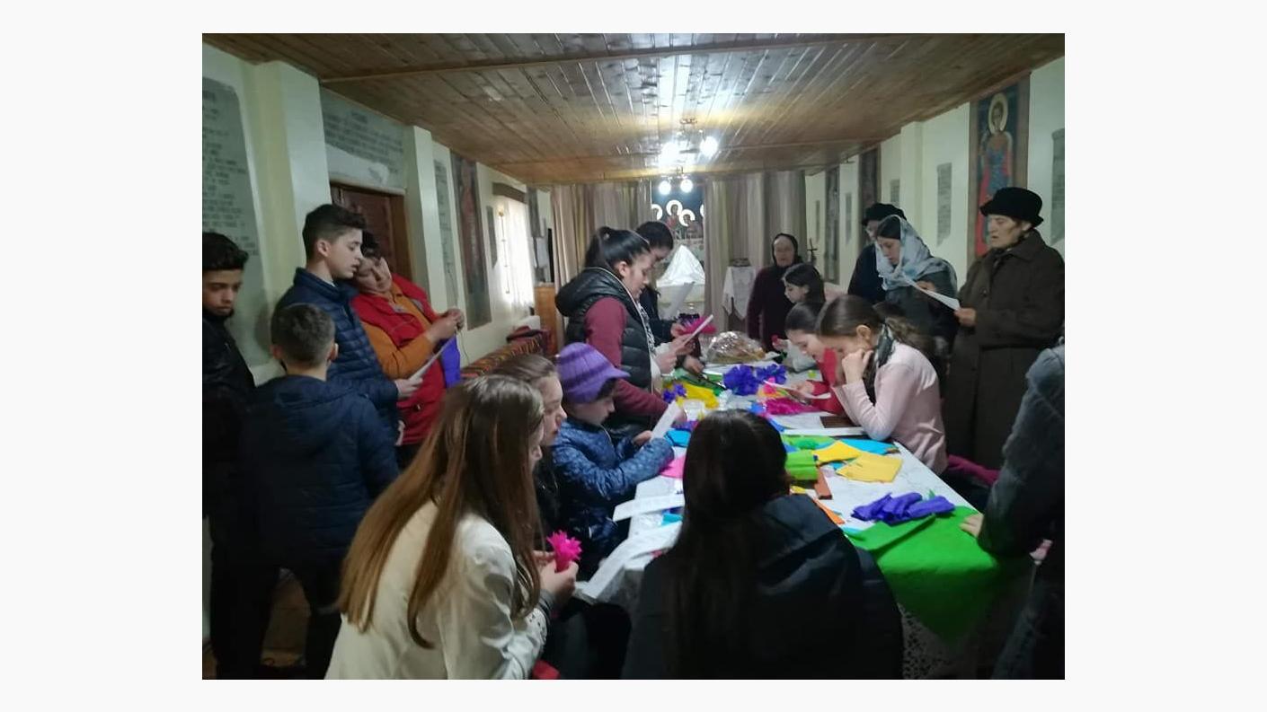 Pentru a înțelege și mai bine bucuria din casa lui Dumnezeu, cateheza i-a unit pe toți într-un atelier tematic în care au realizat flori de primăvară și au cântat pricesne specifice sărbătorii Floriilor și Săptămânii Patimilor.