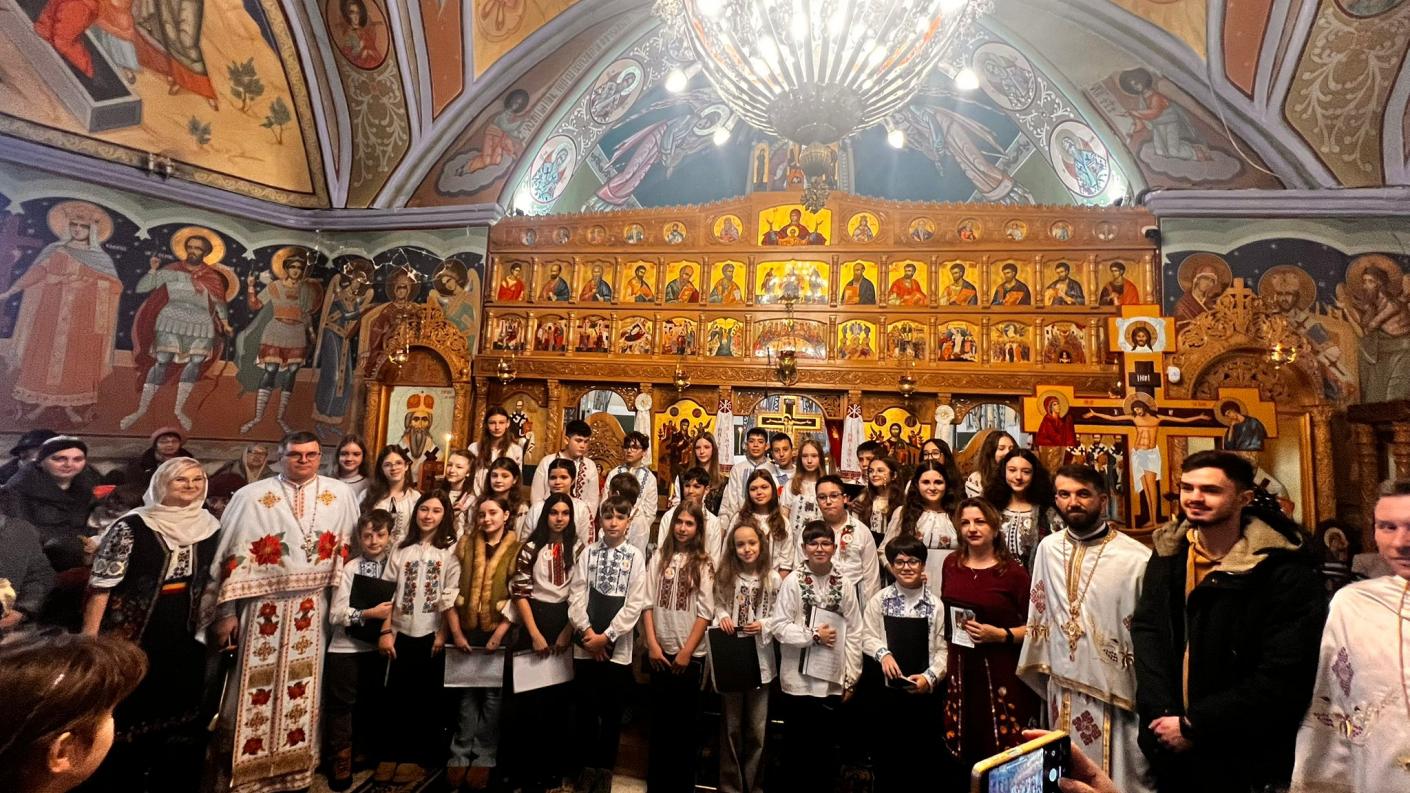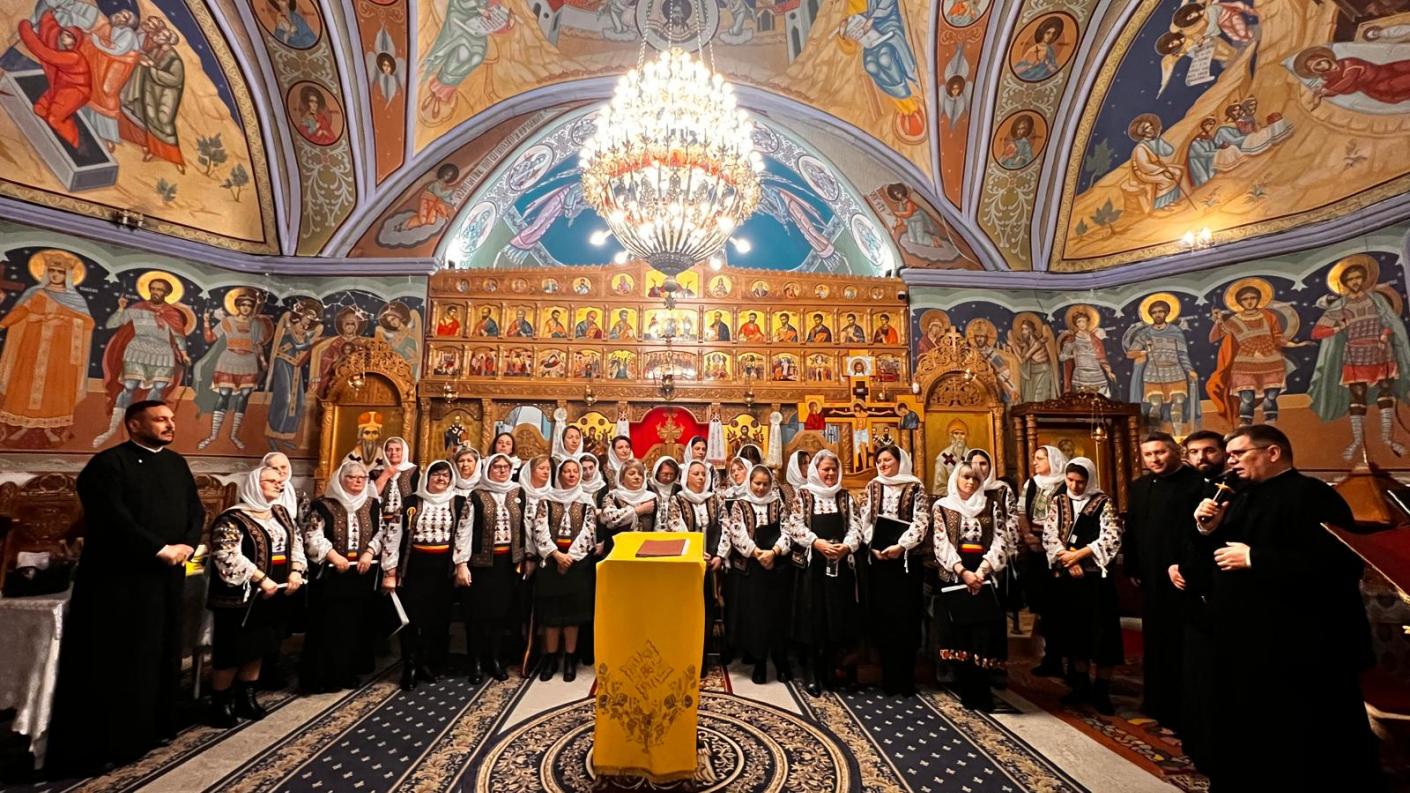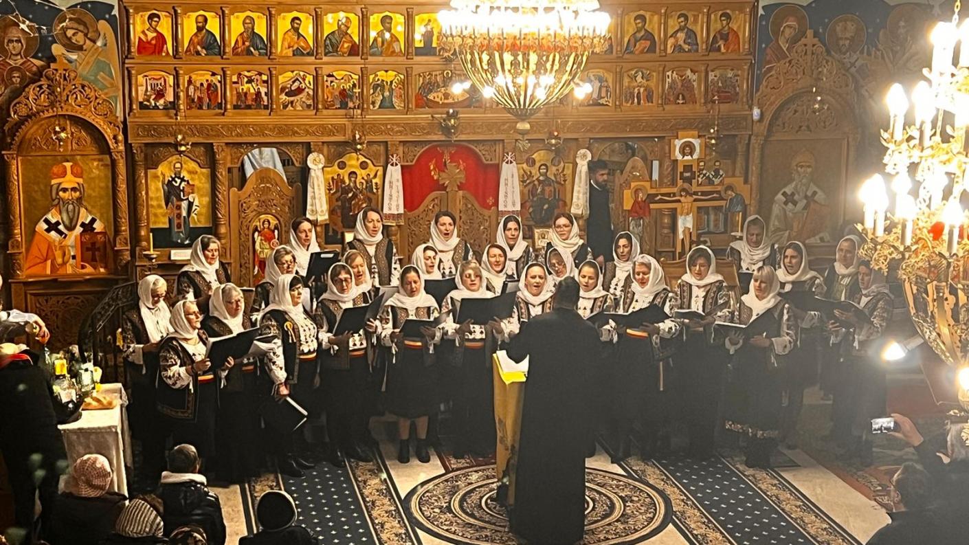 Vineri, 28 noiembrie 2025, după săvârșirea Tainei Sfântului Maslu, credincioșii au primit vizita Coralei feminine a Parohiei Lazaret, dirijată de părintele protoiereu Eugen-Ciprian Ciuche. Interpretarea emoționantă a cântecelor patriotice a încălzit inimile celor prezenți, pregătind atmosfera de sărbătoare ce avea să urmeze.