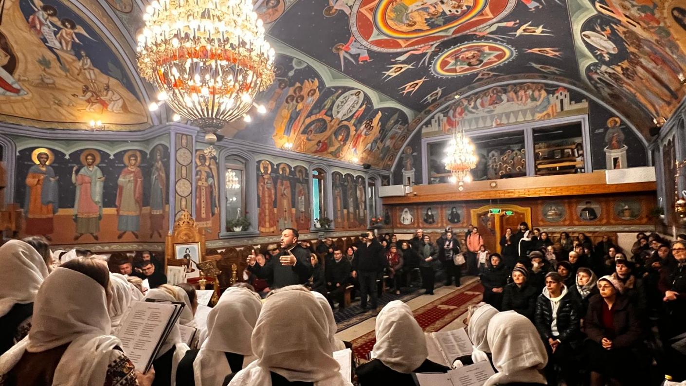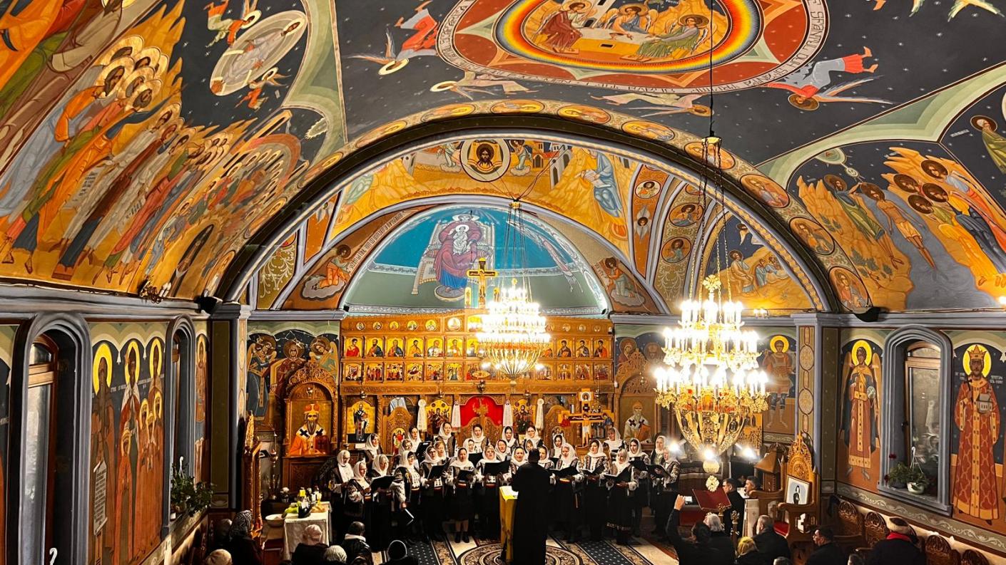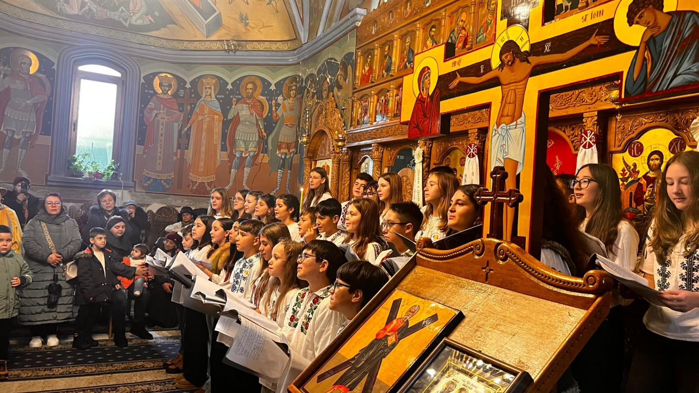 Vineri, 28 noiembrie 2025, după săvârșirea Tainei Sfântului Maslu, credincioșii au primit vizita Coralei feminine a Parohiei Lazaret, dirijată de părintele protoiereu Eugen-Ciprian Ciuche. Interpretarea emoționantă a cântecelor patriotice a încălzit inimile celor prezenți, pregătind atmosfera de sărbătoare ce avea să urmeze.