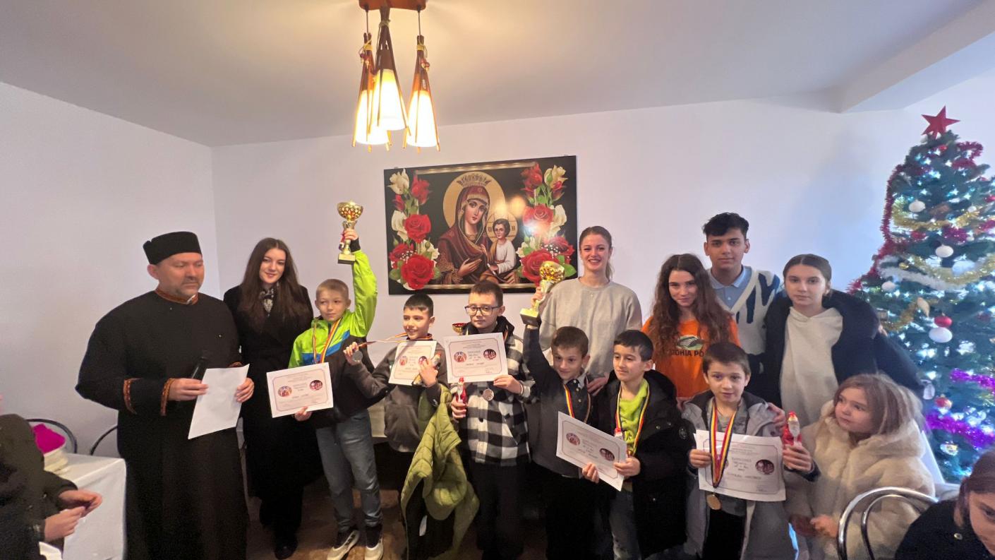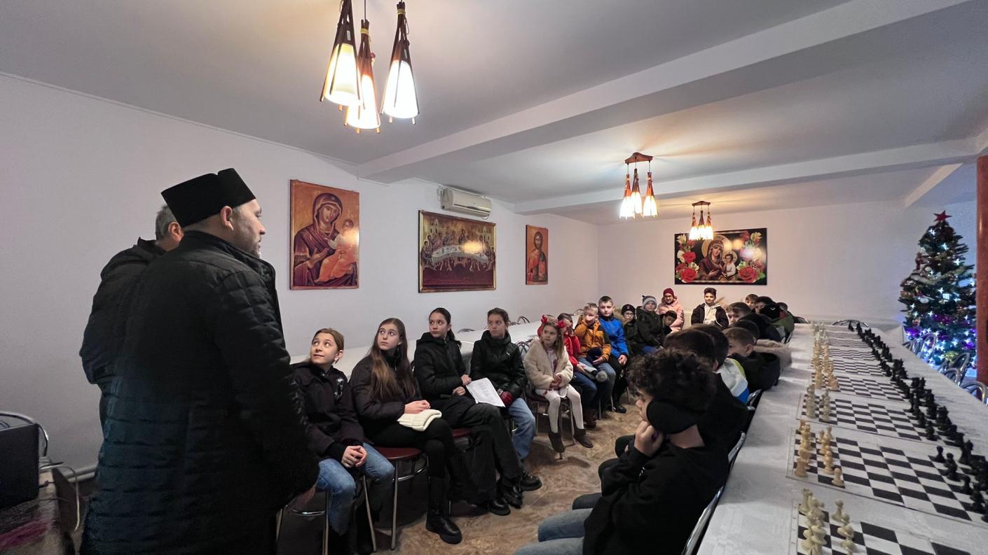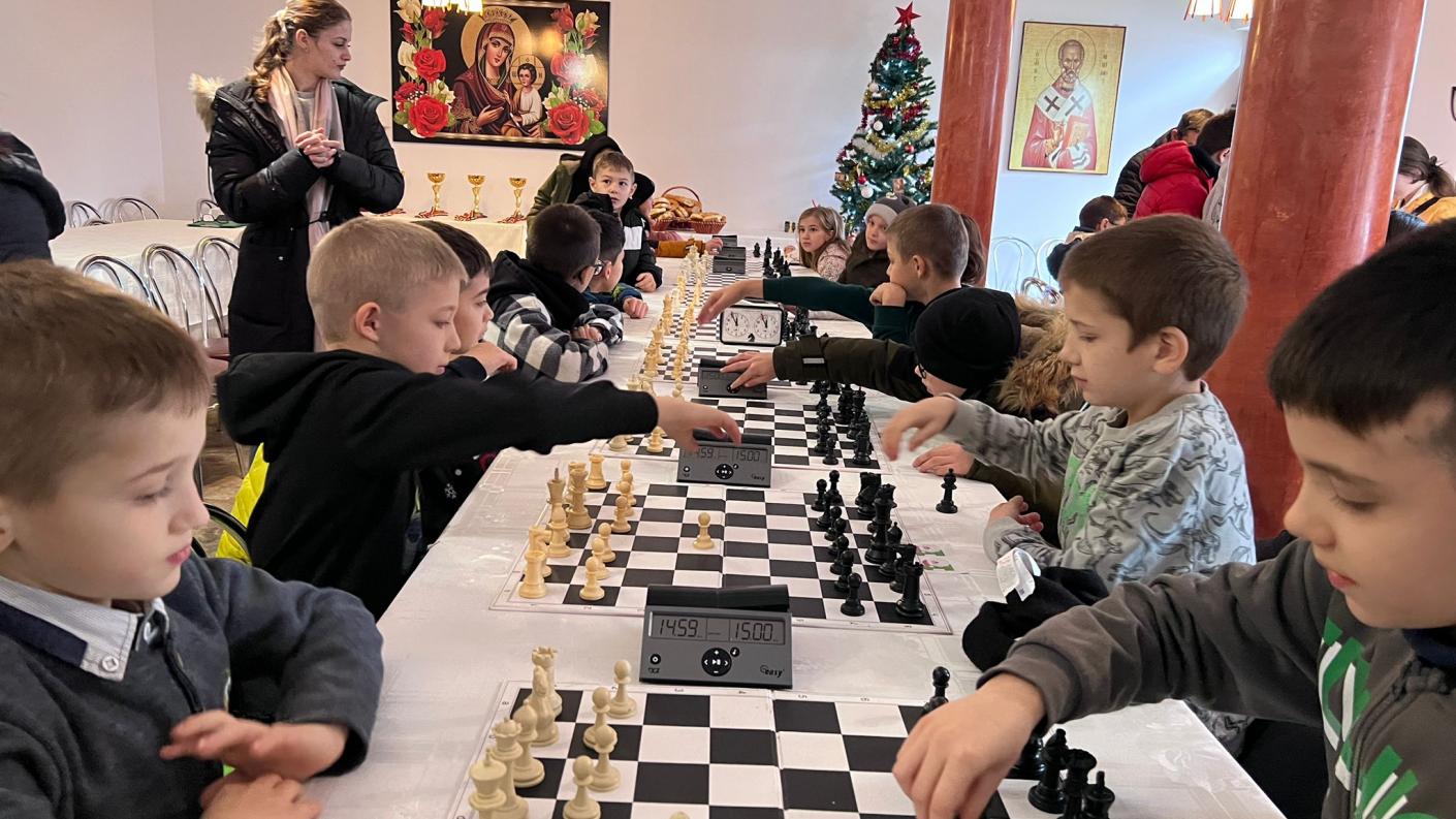 Tot în această zi s-a desfășurat Concursul de șah ”Hristos se naște slăviți-L”, la care au participat 40 de copii din parohie, care au concurat la 4 categorii de vârstă (sub 8 ani, sub 10 ani, sub 12 ani, sub 14 ani ). S-au disputat patru runde de joc în sistem open elvețian, fiecare sportiv având la dispoziție 15 minute pentru fiecare partidă. La finalul concursului, în cadrul festivității de premiere, s-au acordat 4 cupe pentru câștigătorii de categorie, 15 de medalii de aur, argint și bronz pentru primele locuri, ”moșuleți” de ciocolată, colăcei , portocale și diplome personalizate pentru toți participanții. A fost o competiție relaxantă unde strategia și fair-play-ul au fost la loc de cinste, colindele și decorul festiv întregind atmosfera caldă și plină de prietenie.