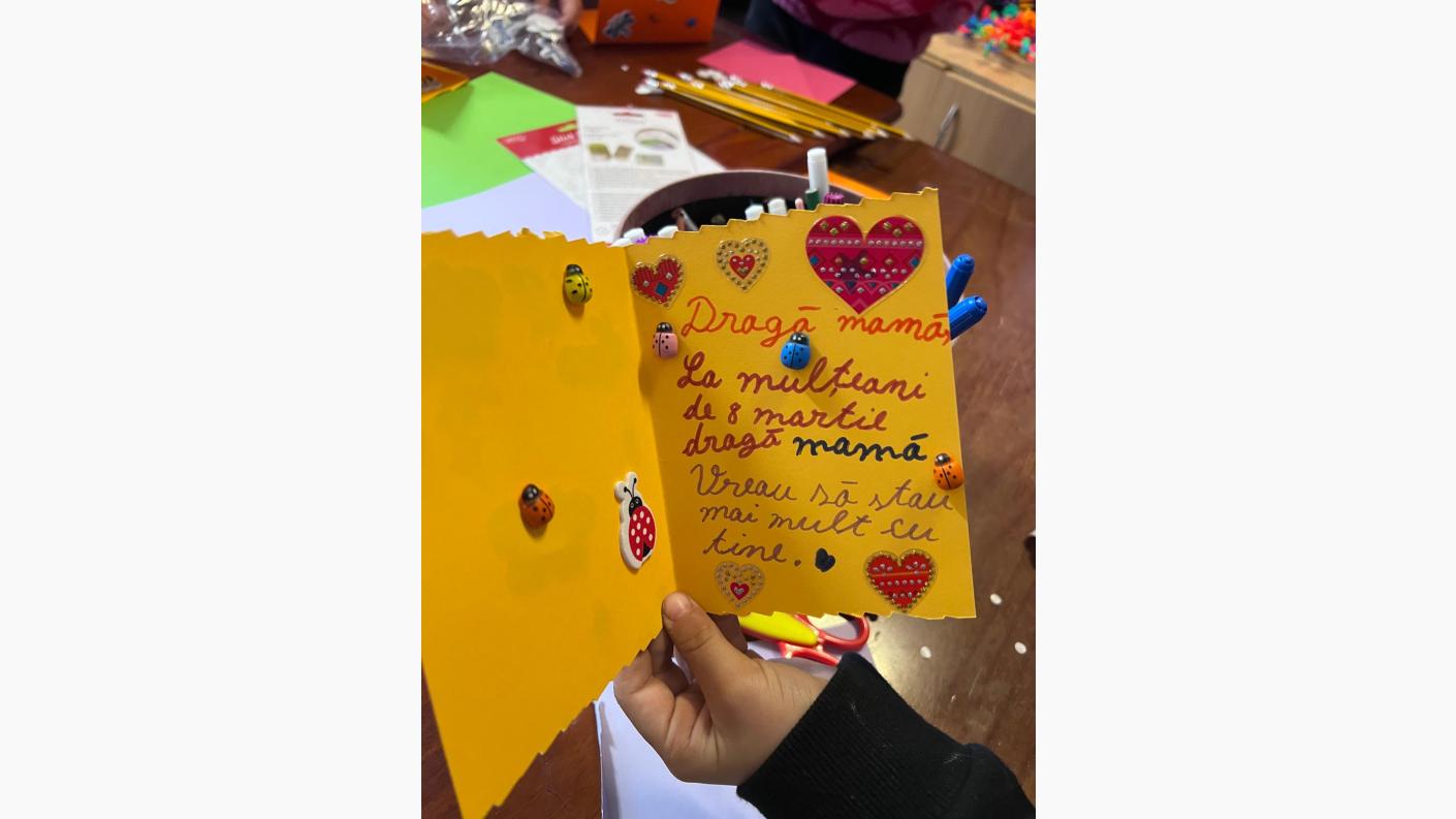 La Centrul de zi „Sfântul Arhanghel Rafail” Holt, copiii au confecționat felicitări pline de culoare și mesaje de dragoste pentru mamele și bunicile lor. Activitatea a fost una creativă și emoționantă, în care cei mici și-au exprimat recunoștința prin desene și gânduri frumoase şi a fost sprijinită şi organizată prin implicarea doamnei Tania Diaconu de la ,,Asociaţia Totul pentru un Surâs”.