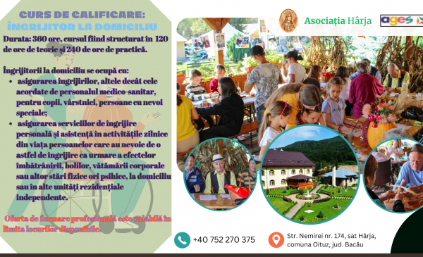 Curs de calificare profesională pentru ocupația „îngrijitor la domiciliu” organizat gratuit de Asociația „Sf. Voievod Ștefan cel Mare” - Hârja
