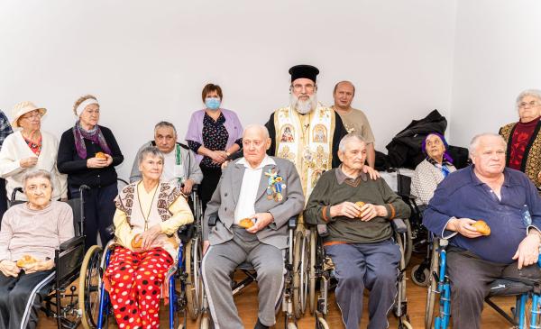 Înaltpreasfintitul Părinte Arhiepiscop Ioachim, în rugăciune, alături de vârstnicii rezidenți de la Hârja