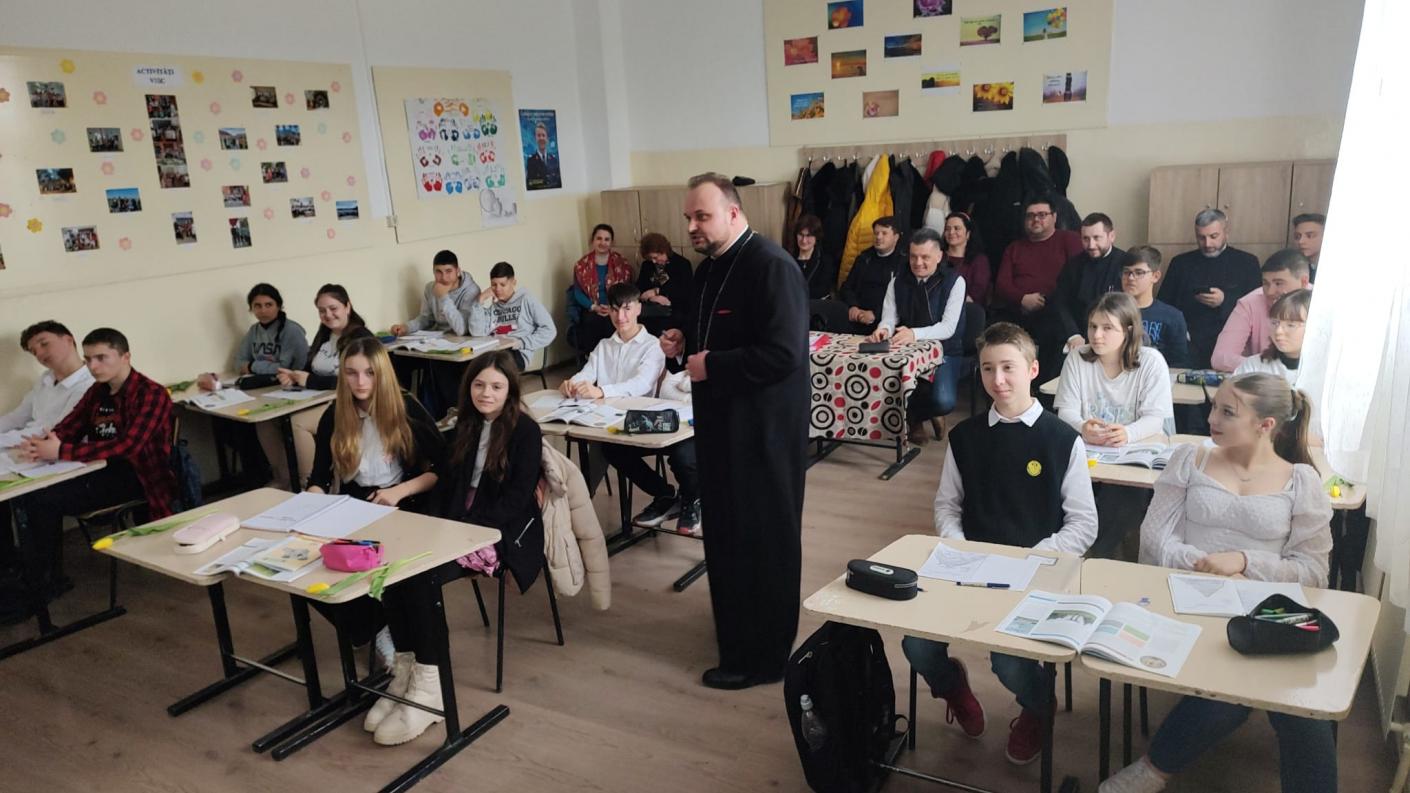 Școala Gimnazială „Sfântul Voievod Ștefan cel Mare” din Onești a fost vineri, 15 martie 2024, gazda Cercului metodic al profesorilor de religie. Activitatea demonstrativă a fost susținută de domnul profesor Scripcaru Cristian și a constat în coordonarea unei scurte demonstrații în cadrul Cercului interdisciplinar al elevilor de religie-română-TIC „ACUTIS_2024”, mai precis realizarea unui set de aplicații de către membrii cercului (elevi de clasele a VI-a și a VII-a în platforma learningapps.com. Aplicațiile vor fi folosite în lecțiile de religie cu elevii de clasa a II-a, dar vor fi propuse și altor colegi profesori de religie printr-o platformă dedicată. Susținerea referatului i-a revenit doamnei profesoare Liliana Socaciu, de la Școala Gimnazială „Vasile Gh. Radu” Satu Nou, comuna Pîrgărești, cu tema „Activitățile extrașcolare specifice disciplinei religie și proiectarea acestora”. Tema a fost foarte bine pregătită și argumentată, cu activități din experiența domniei sale. Întâlnirea s-a bucurat și de prezența a doi elevi ai Liceului Teologic „Episcop Melchisedec” din Roman, însoțiți de un cadru didactic, care au realizat o scurtă prezentare a instituției profesorilor de religie prezenți, dar și elevilor de clasa a VIII-a, evidențiind aspectele pozitive, individuale și comunitare, de care elevii pot beneficia doar într-o școală teologică.