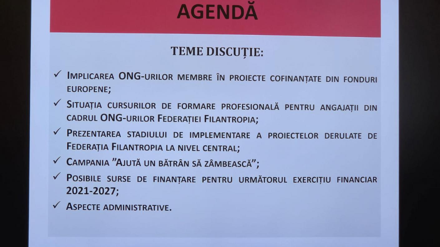 Programul a debutat miercuri, 12 noiembrie, cu ședința Consiliului Director al Federației Filantropia, urmată de o slujbă de Te Deum, săvârșită de Preasfințitul Părinte Varlaam Ploieșteanul - Episcop-vicar patriarhal, ca act de binecuvântare și recunoștință pentru activitatea desfășurată.
