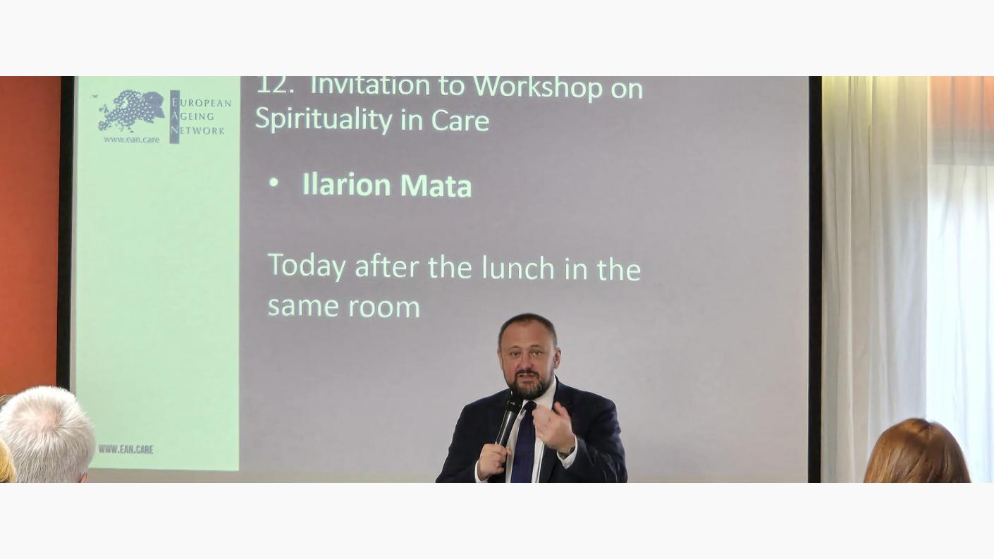 Ultima parte a evenimentului a constat în implicarea participanților la un atelier de lucru cu titlul „Spirituality in Care”, organizat și coordonat de reprezentantul României, pr. Ilarion Mâță, consilier social al Arhiepiscopiei Romanului și Bacăului și cadru didactic la Facultatea de Teologie Ortodoxă „Dumitru Stăniloae” din Iași, Specializarea Asistență Socială, care a făcut referire la rolul spiritualității în îngrijirea de lungă durată.
