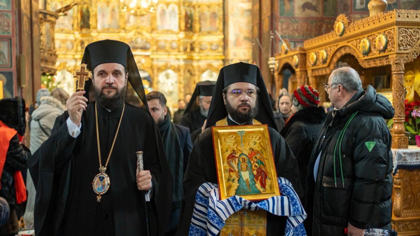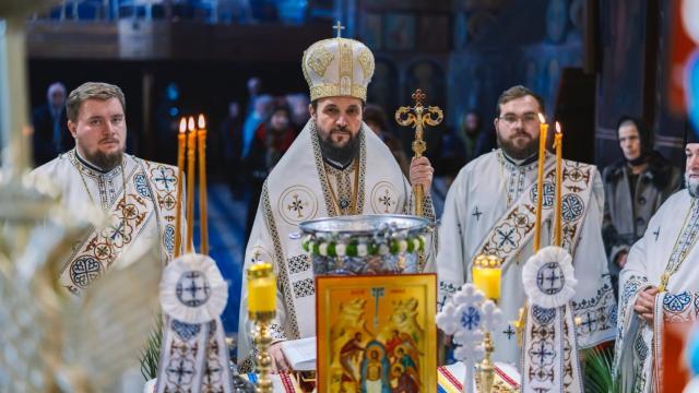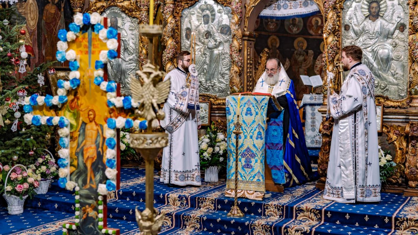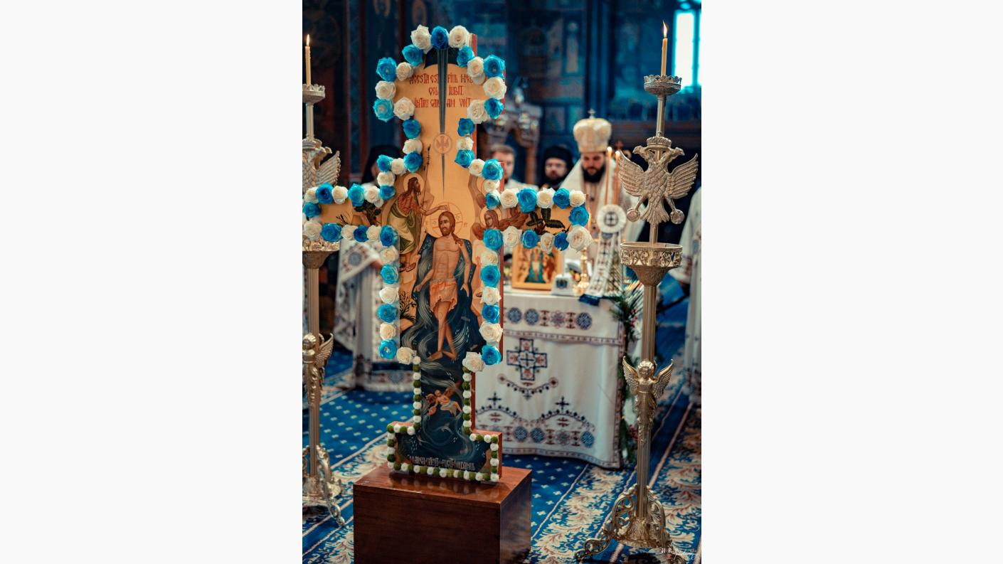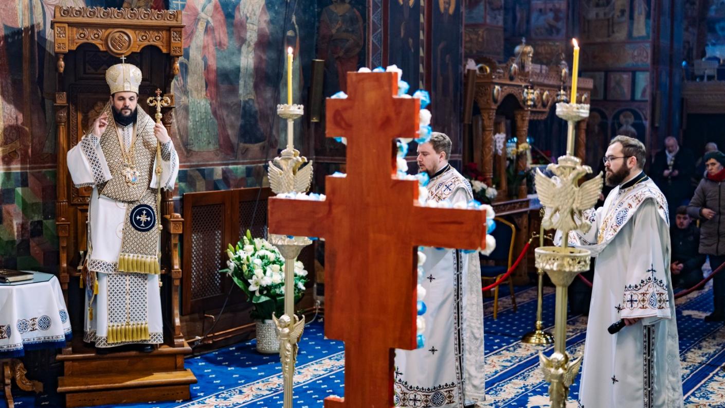 La finalul Sfintei Liturghii, conform rânduielilor tipiconale ale acestei zile, soborul slujitorilor a oficiat sub protia Preasfințitului Părinte Teofil Sfințirea cea Mare a Apei.