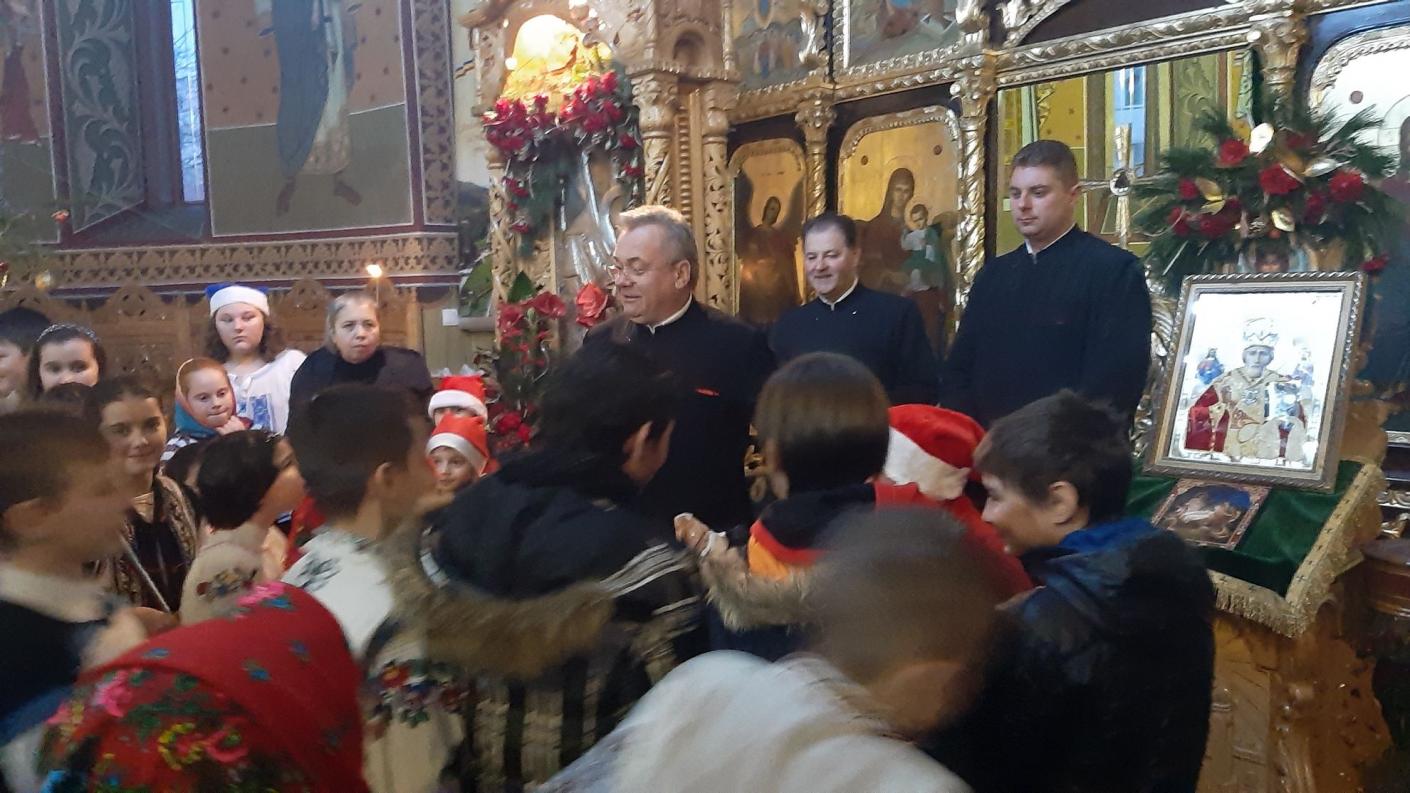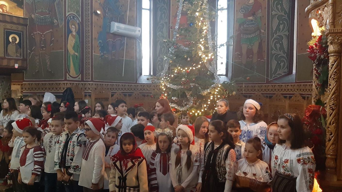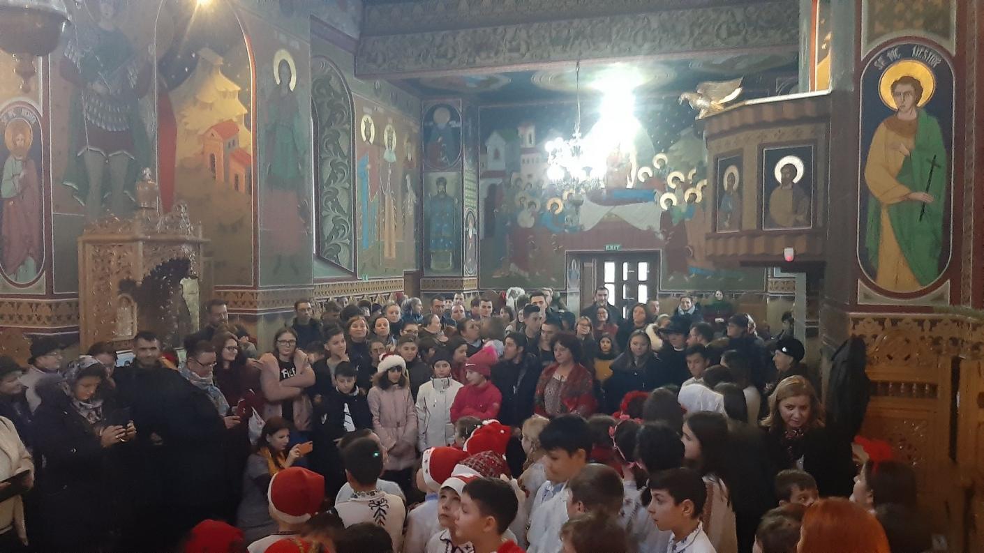 Părintele Protopop Vasile Cozma, alături de credincioșii Parohiei Sf. Nicolae, au primit cu bucurie mesajul și urările copiilor, care au reușit să transmită emoție, să mențină vie tradiția strămoșească de a colinda și de a-L mărturisi pe Hristos ca Mântuitor al lumii.