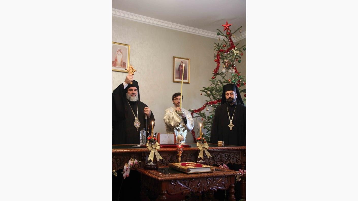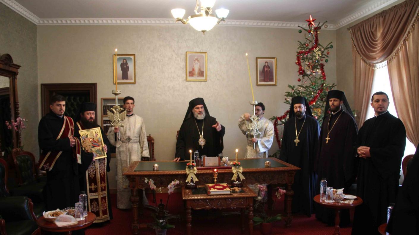 Potrivit tradiţiei acestei zile, soborul de slujitori a pornit în procesiune cu icoana Naşterii Domnului, de la Catedrala „Cuvioasa Parascheva”, Roman, către cabinetul Preasfinţitului Părinte Ioachim Băcăuanul, cântând troparul „Naşterea Ta, Hristoase” şi condacul „Fecioara astăzi”.