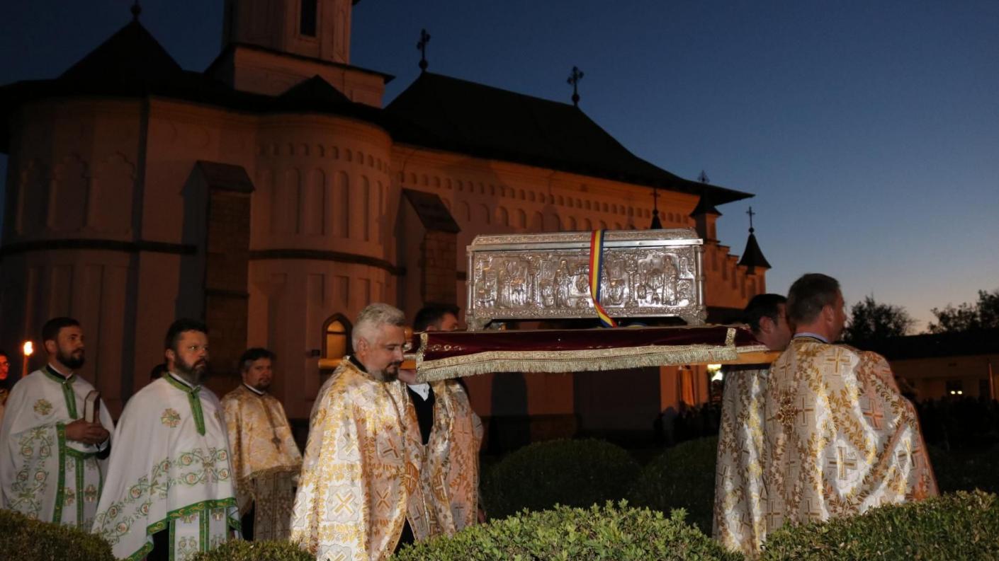 La momentul specific, în sunet de toacă și freamăt de cer, ierarh, cler și credincioși, dimpreună cu sfintele icoane și racla cu sfinte moaște din Catedrala Cuvioasei Parascheva, au săvârșit procesiunea dimprejurul locașului mușatin, cântând imnuri și alte cântări bisericești întru cinstea Sfintei care se bucură de cea mai mare cinstire în Biserica noastră.