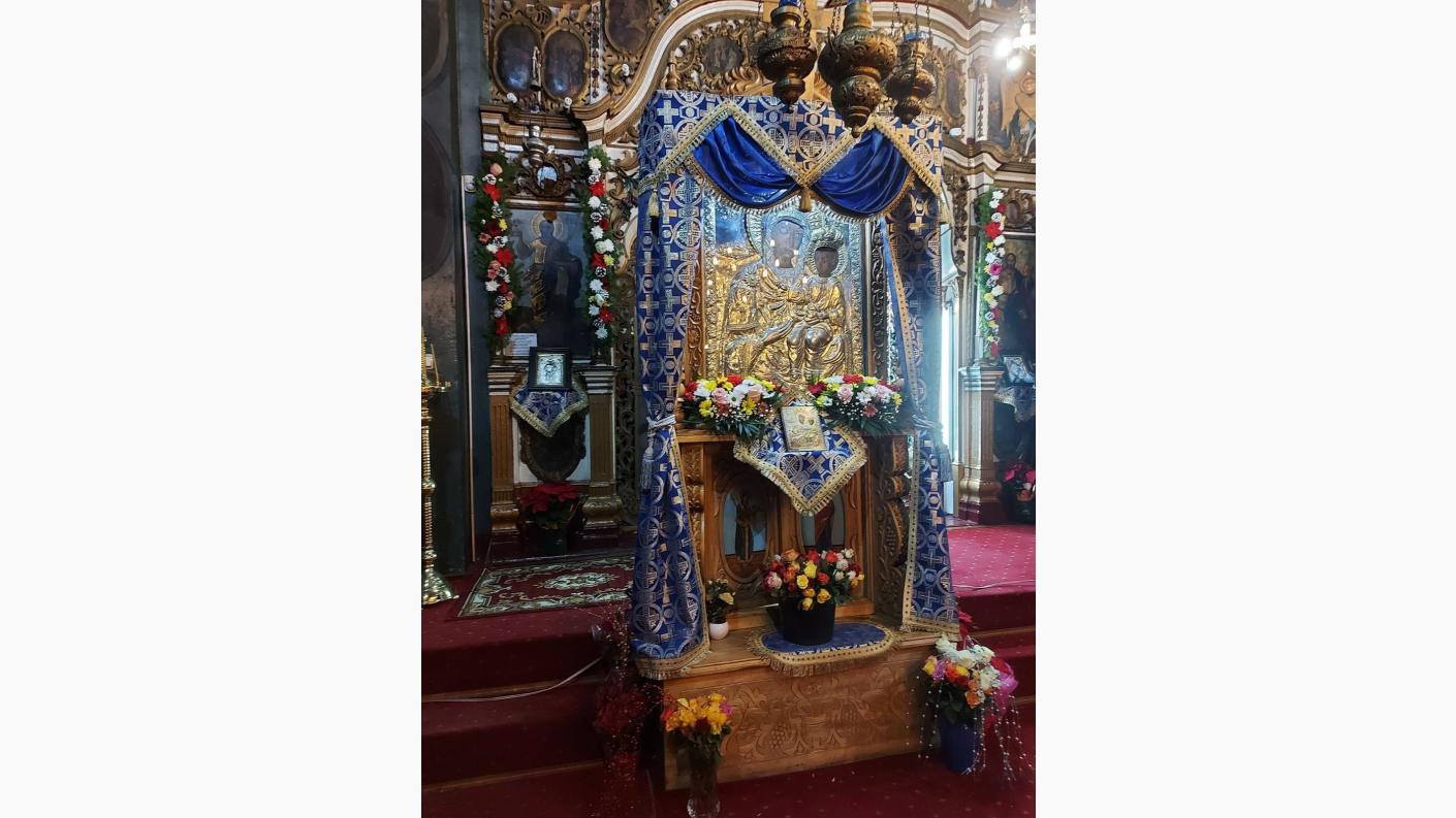 Sfânta Icoană Făcătoare de Minuni de la Trifeşti o întruchipează pe Maica Domnului împreună cu Pruncul Iisus. Ea este cunoscută de către credincioşi sub numele: “Sfânta” sau “Sfânta de la Trifeşti”, fiind singura icoană făcătoare de minuni din Arhiepiscopia Romanului și Bacăului aflată într-o biserică de mir. (D-na Corina Segneanu)