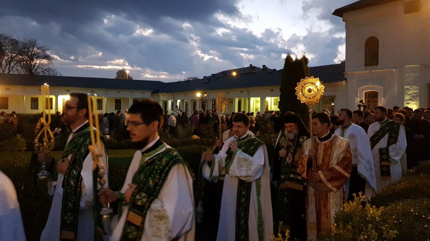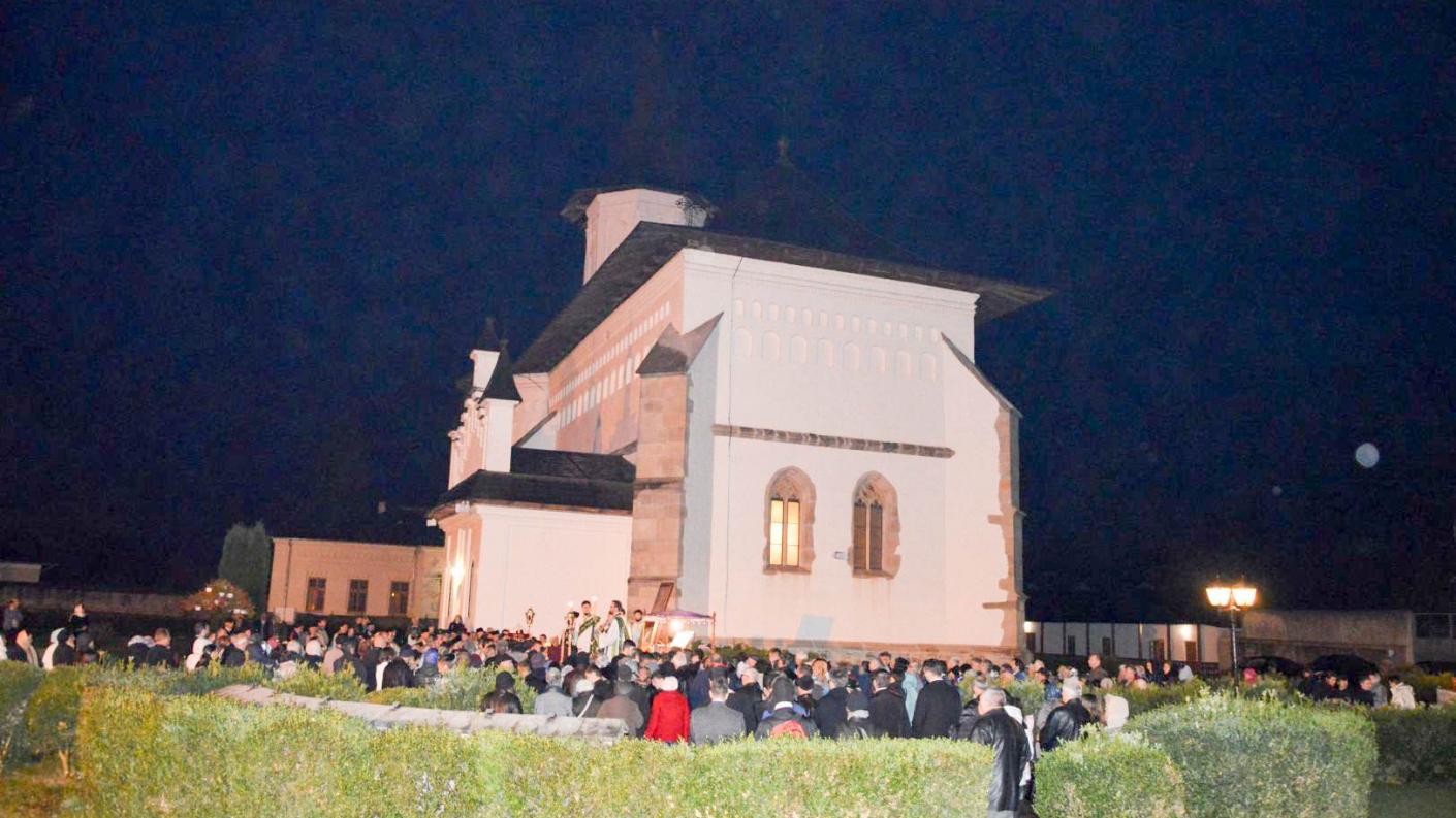 În ajunul Sfintei Cuvioase Parascheva, adesea, cerul se înnorează și o ploaie măruntă începe să cadă peste cetatea mușatină a Romanului, unde se află una dintre cele mai vechi biserici închinate Ocrotitoarei Moldovei. Molcome și calde, asemenea lacrimilor vărsate cândva de Sfânta, picurii de ploie udă fața întregului pământ, în timp ce clopotele din turnul înălțat de eruditul episcop Melchisedec Ștefănescu, întregesc cântul sacru al tinerilor seminariști care dau răspunsurile la slujba Vecerniei. Anul acesta, credincioșilor și pelerinilor veniți să-și plece genunchii, admirând fresca unică a vieții Cuvioasei prezentată în icoane pe zidurile interioare ale sfântului locaș, s-au adăugat preoții din Roman și Bacău, împreună rugători cu Înaltpreasfințitul Părinte Ioachim, Arhiepiscopul Romanului și Bacăului, ierarh imnograf, continuator al slujirii arhierești pe scaunul vlădicesc al eparhiei ce a dăruit Bisericii și neamului numeroase personalități din sfera spiritualității și culturii românești. La momentul specific, în sunet de toacă și freamăt de cer, ierarh, cler și credincioși, dimpreună cu sfintele icoane și racla cu sfinte moaște din Catedrala Cuvioasei Parascheva, au săvârșit procesiunea dimprejurul locașului mușatin, cântând imnuri și alte cântări bisericești întru cinstea Sfintei care se bucură de cea mai mare cinstire în Biserica noastră. Apoi, pe o micuță scenă, Înaltpreasfinția Sa a rostit din ”Imnul acatist închinat Sfintei Cuvioase Parascheva”, una dintre cântările profund spirituale semnate de ierarh întru slava lui Dumnezeu și cinstirea sfinților din cuprinsul țării noastre. La sfârșit, în fața preoților și pelerinilor, chiriarhul a rostit un cuvânt de învățătură, amintind și câteva dintre evenimentele istorice legate de cinstirea Sfintei Parascheva în Moldova. ”Am participat împreună la slujba Vecerniei și a Litiei, sfârșind seara cu această procesiune. Pentru noi, cei din Eparhia Romanului și Bacăului, Sfânta Parascheva are un cult aparte pentru că, încă de acum 600 de ani, Sfânta avea aici, în Roman, o biserică închinată ei. În acest an, se împlinesc șapte decenii de când Sfânta a fost într-o procesiune rămasă în istorie, trecând prin mai multe localități. A fost în anul 1947, în perioada secetei cumplite de după război, când vrednicul de pomenire patriarhul Justinian Marina, a încuviințat efectuarea primei procesiuni cu racla cu moaștele Sf. Cuvioase Parascheva, străbătând satele pustiite de secetă ale județelor Iași, Vaslui, Roman, Bacău, Putna, Neamț, Baia și Botoșani, rânduind ca părintele arhimandrit, de atunci, Teoctist Arăpașu (devenit părinte patriarh al Bisericii Ortodoxe Române între 1986 – 2007) să însoțească sfintele moaște prin Moldova”, a declarat Înaltpreasfinția Sa. ”Una din marile greșeli din perioada comunistă a avut loc în iunie 1987, când a fost dărâmată una dintre cele mai mari și mai frumoase biserici din București, închinată Sfintei Parascheva. Acum zece ani, în anul 2007, în orașul Voluntari a început construcția uneia dintre cele mai frumoase și mari biserici închinate sfintei Parascheva”, a mai menționat ierarhul. La finalul cuvântului său, mulțumind tuturor celor care, cu dragoste și evlavie au participat la slujbă, Înaltpreasfinția Sa i-a îndemnat pe toți ca, înainte de a merge în pelerinaj spre Iași, să intre și să să închine în Catedrala din Roman, unde se află o părticică din moaștele Sfintei Parascheva, dimpreună cu a altor sfinți cinstiți în Biserica noastră.