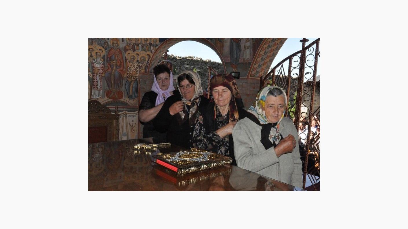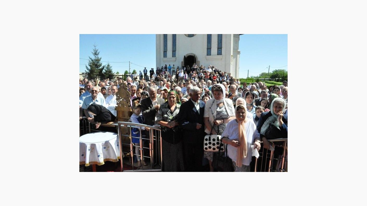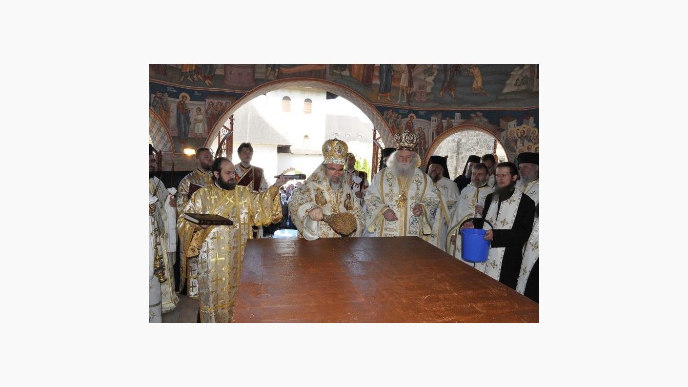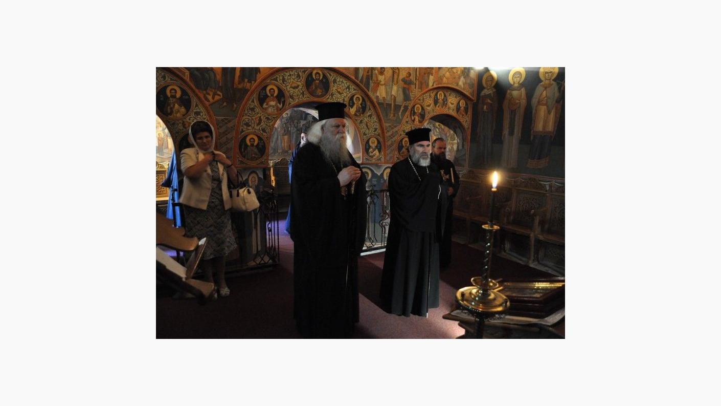Sfânta Liturghie a fost săvârşită de PS Calinic Botoşăneanul şi de PS Ioachim Băcăuanul, alături de soborul de preoţi şi diaconi, pe o scenă amenajată în curtea aşezării monahale. Din soborul slujitorilor au făcut parte părinţi stareţi şi preoţi parohi din toată Mitropolia Moldovei şi Bucovinei. Slujba s-a bucurat de prezenţa unui număr mare de credincioşi. La acest moment de sărbătoare au venit mulţi dintre fiii duhovniceşti ai arhimandritului Nicodim Gheorghiţă, stareţul Mănăstirii Hadâmbu, care ajută aşezarea monahală în lucrarea misionară şi mai ales social-filantropică. Pelerinilor prezenţi la Sfânta Liturghie s-au adăugat copiii de la şcoala din localitate, însoţiţi de cadrele didactice. PS Calinic Botoşăneanul şi PS Ioachim Băcăuanul, împreună cu soborul de preoţi şi diaconi, au oficiat în continuare Agheazma mică din ziua Izvorului Tămăduirii. PS Calinic Botoşăneanul a acordat prof. univ. dr. Vasile Burlui distincţia "Sfântul Ierarh Dosoftei", din partea Înalt Preasfinţitului Teofan. De asemenea, Vasile şi Ana Onică au primit Distincţia de vrednicie "Ştefan cel Mare şi Sfânt".