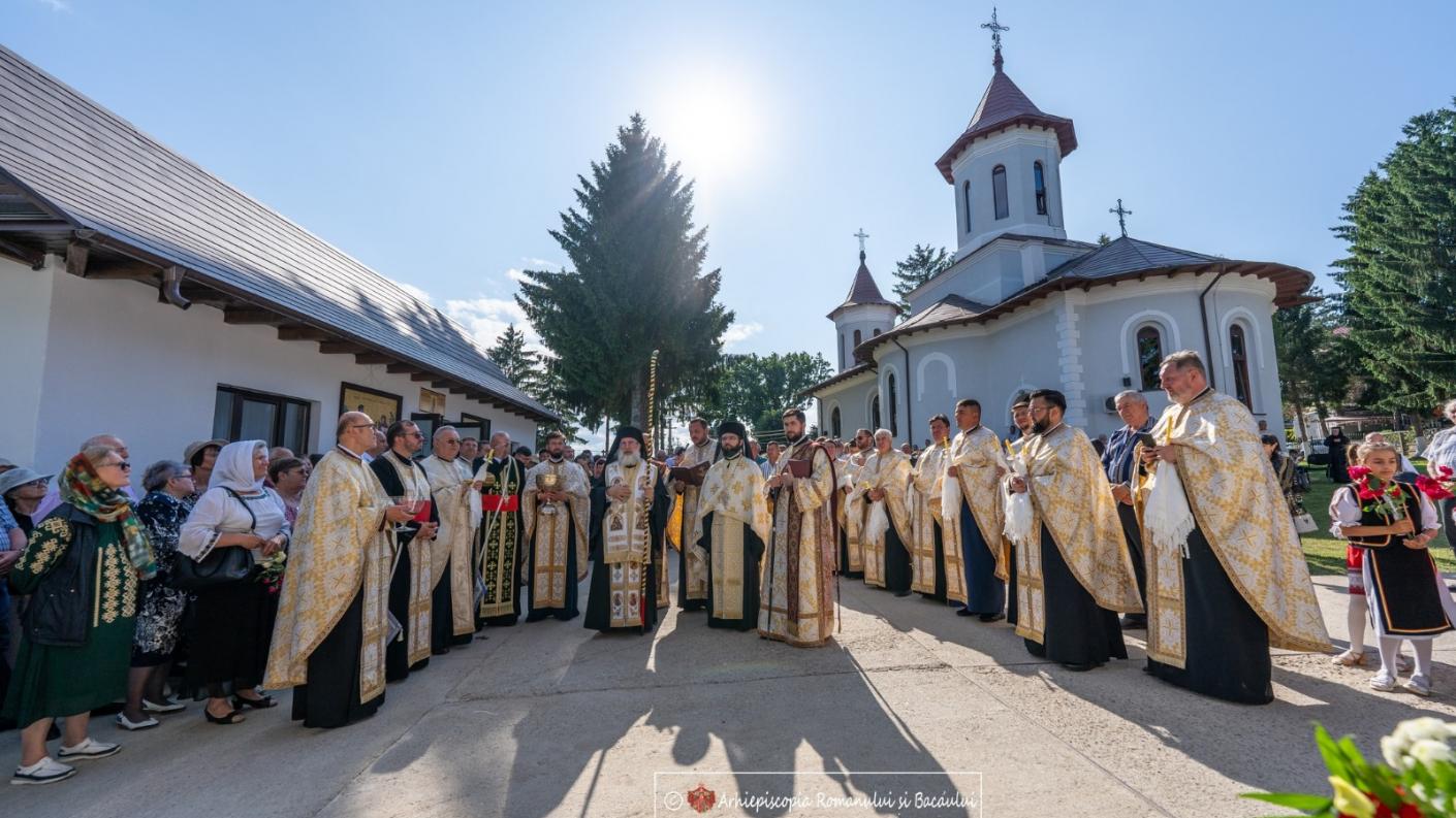 Rânduiala de sfințire a fost săvârșită de către Înaltpreasfințitul Părinte Ioachim, Arhiepiscopul Romanului și Bacăului, a cărui prezență a adus binecuvântare peste toată lucrarea parohiei. În contextul actual al Bisericii Ortodoxe Române, anul 2025 este proclamat drept An omagial al centenarului Patriarhiei Române și An comemorativ al duhovnicilor și mărturisitorilor ortodocși români din secolul al XX-lea, iar acest eveniment s-a așezat în chip firesc sub semnul acestor repere spirituale, având în vedere că noile edificii sunt închinate Sfinților Cuvioși Cleopa și Paisie de la Sihăstria, canonizați în acest an.