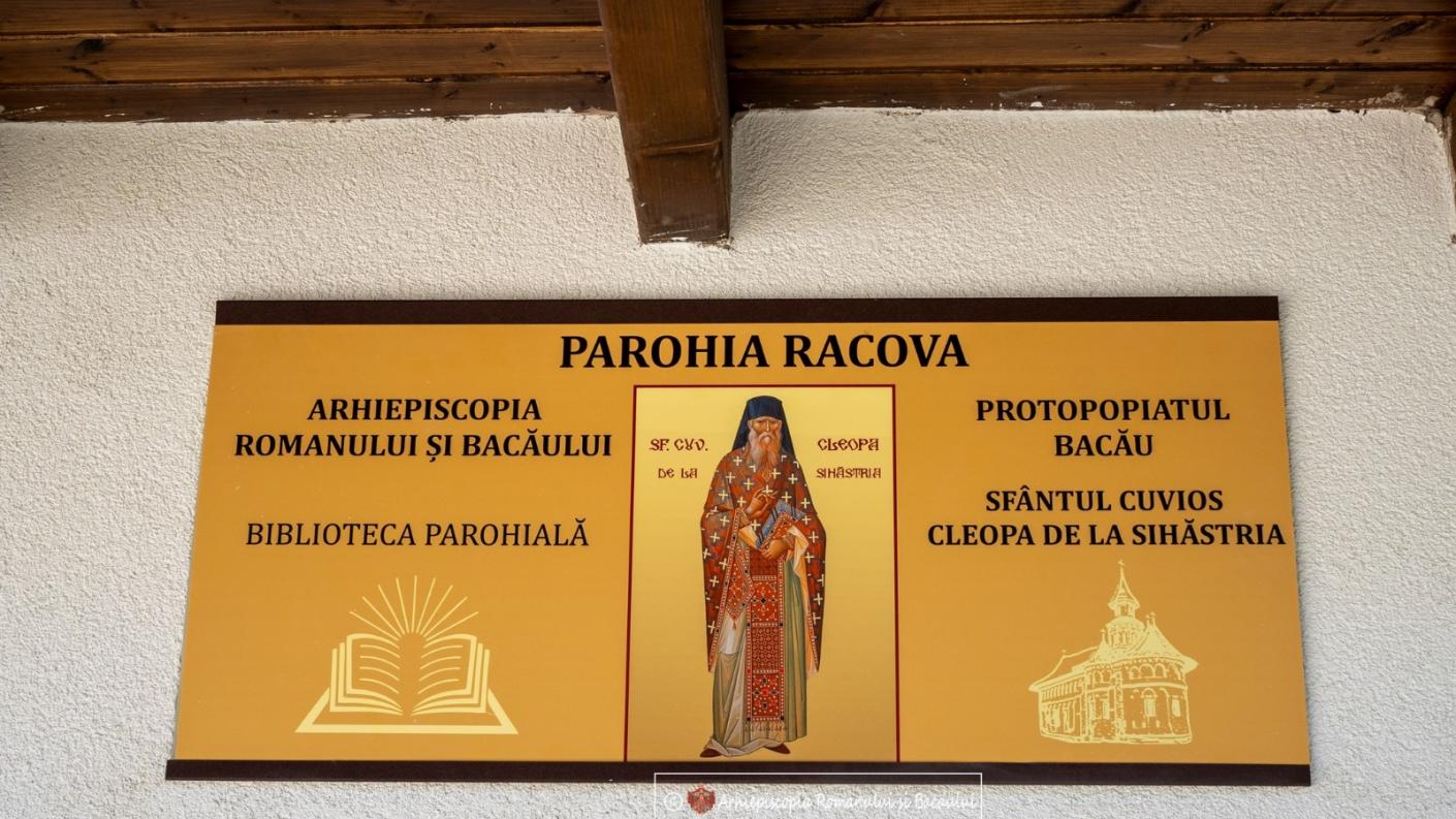 „Ne aflăm astăzi în Parohia Racova cu un prilej binecuvântat, chiar în ajunul Duminicii Tuturor Sfinţilor Români, pentru a încununa lucrările ce s-au săvârşit la Altarul de vară şi la Biblioteca parohială, tocmai pentru că obştea de la Racova doreşte să-i cinstească în mod deosebit, în acest an, pe cei doi sfinţi – Cleopa şi Paisie de la Sihăstria – în cinstea cărora părintele paroh, ajutat de părintele slujitor, a ridicat aceste edificii. Ne bucurăm de prezenţa Înaltpreasfinţiei Sale în mijlocul comunităţii şi rugăm pe Bunul Dumnezeu să dăruiască pace tuturor!”
