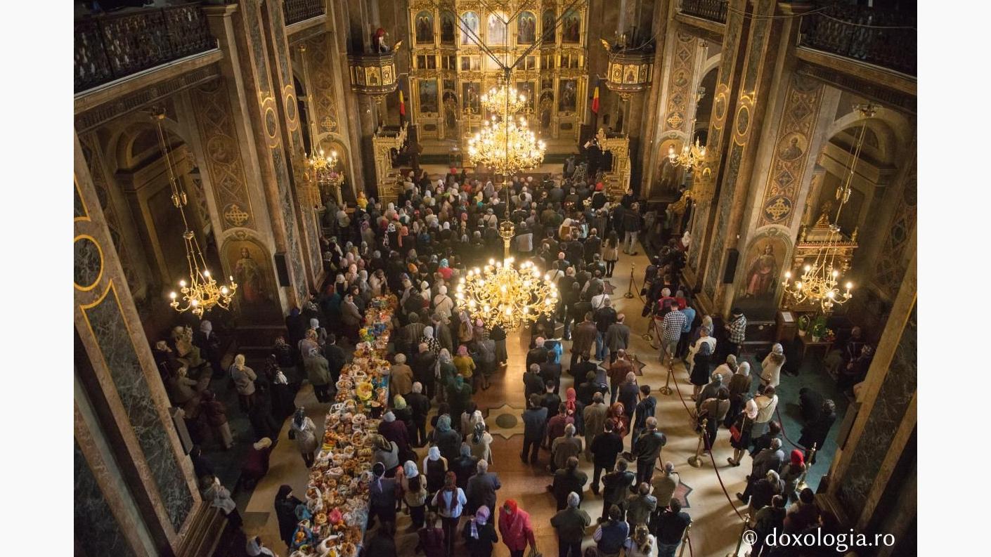 Numeroși credincioși au participat, cu acest prilej, la Sfânta și Dumnezeiasca Liturghie în Catedrala Mitropolitană din Iași. Slujba a fost săvârșită de Înaltpreasfinţitul Părinte Ioachim, Arhiepiscopul Romanului şi Bacăului, alături de un sobor de preoţi şi diaconi. La finalul Sfintei Liturghii arhierești, părintele Arhimandrit Hrisostom Rădășanu, Consilier al Sectorului Învăţământ al Arhiepiscopiei Iaşilor, a ținut un cuvânt de învățătură, prin care a prezentat credincioșilor modelul Sfântului Mare Mucenic Gheorghe, dar a atras atenția și asupra a ceea ce mai înseamnă astăzi a fi creștin, într-o lume marcată de comoditate. „Astăzi, în această zi, numită Sâmbăta lui Lazăr, s-a întâmplat în acest an să cadă și sărbătoarea Sfântului Marelui Mucenic Gheorghe, purtătorul de biruință, care este și ocrotitorul acestei sfinte Catedrale. În fapt, mai toate bisericile-catedrale ale Moldovei au fost puse sub binecuvântarea acestui sfânt mare. Un sfânt mare pentru că poporul are foarte multă evlavie la dânsul. Un sfânt mare pentru că această evlavie nu a lăsat-o Sfântul nerăsplătită cu mari și binecuvântate lucrări. Un sfânt mare pentru că și astăzi, la aproape 1700 de ani de la trecerea sa la cele veșnice, omul acesta încă ne mai grăiește câteva lucruri despre Iisus Hristos, despre ce înseamnă să fii Biserică, despre cum îți arăți apartenența la acest Dumnezeu și la această lucrare pe care El a rânduit-o în lume și pe care noi o numim Biserică și, la urma urmei, despre felul în care se cade, se cuvine a trăi fiecare creștin de la începutul până la sfârșitul veacului acestuia”, a subliniat Sfinția sa. Marele Mucenic Gheorghe a devenit și ocrotitorul noii Catedrale din Iași, slujba de sfințire a acesteia din anul 1887 având loc în ziua de prăznuire a sfântului, 23 aprilie. Pe lângă acest praznic, Catedrala Mitropolitană din Iași își mai sărbătorește hramul pe 14 octombrie, de Sfânta Cuvioasă Parascheva, dar și pe 2 februarie, de Întâmpinarea Domnului, hramul istoric al lăcașului de cult. (preluare de pe siteul doxologia.ro)