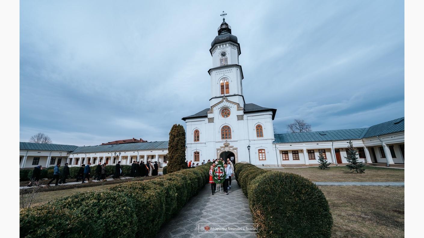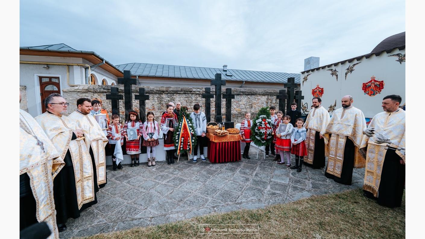 După dumnezeiasca Liturghie a fost săvârșită rânduiala Parastasului, sub protia Înaltpreasfințitului Părinte Arhiepiscop Ioachim, Arhiepiscopul Romanului și Bacăului. La finalul slujbei preotul Daniel Dinga a dat citire cuvântului realizat de pr. dr. Florin Țuscanu, fost slujitor al acestei parohii: