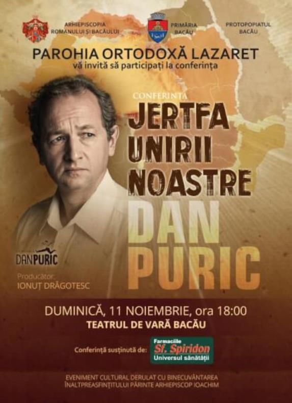 „Jertfa Unirii noastre” – conferinţă susţinută de Dan Puric în Bacău