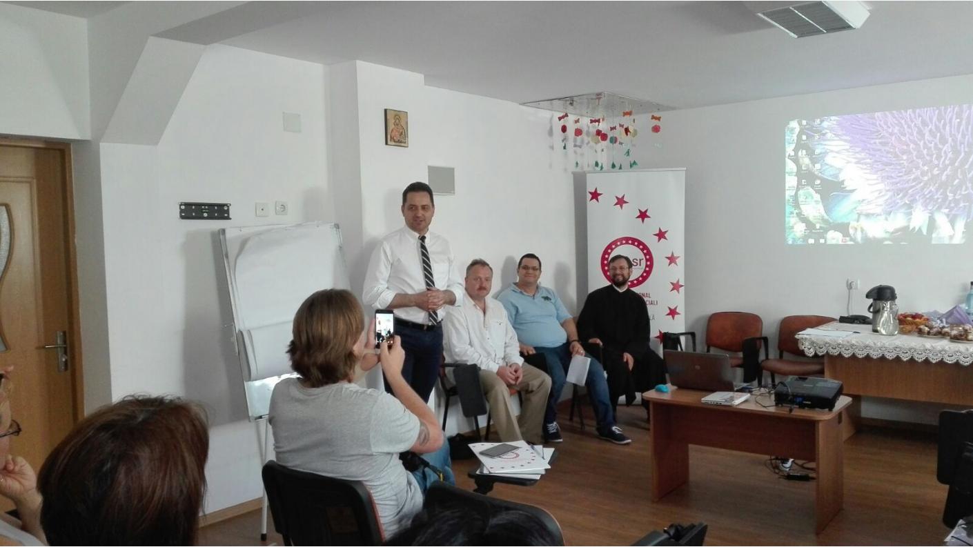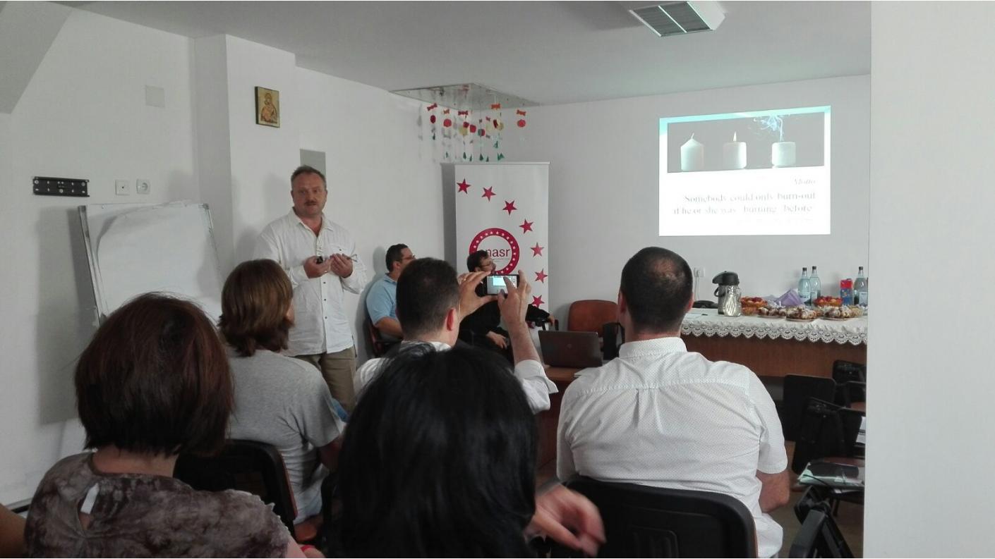Au urmat cele două prelegeri: Despre burnout: ce este burnout-ul, cum se manifestă, factori favorizanți (abordare teoretică explicând cum trairea psihologică se transpune în plan somatic) susținută de Ovidiu Bălean – Președinte Colegiul Psihologilor din România - Filiala Bacău și Burnout-ul în serviciile sociale. Cauzele/factorii care generează apariția burnout –ului în serviciile sociale, prezentată de Radu Năforniță – Şef Centru de Prevenire, Evaluare și Consiliere Antidrog al Județului Bacău.