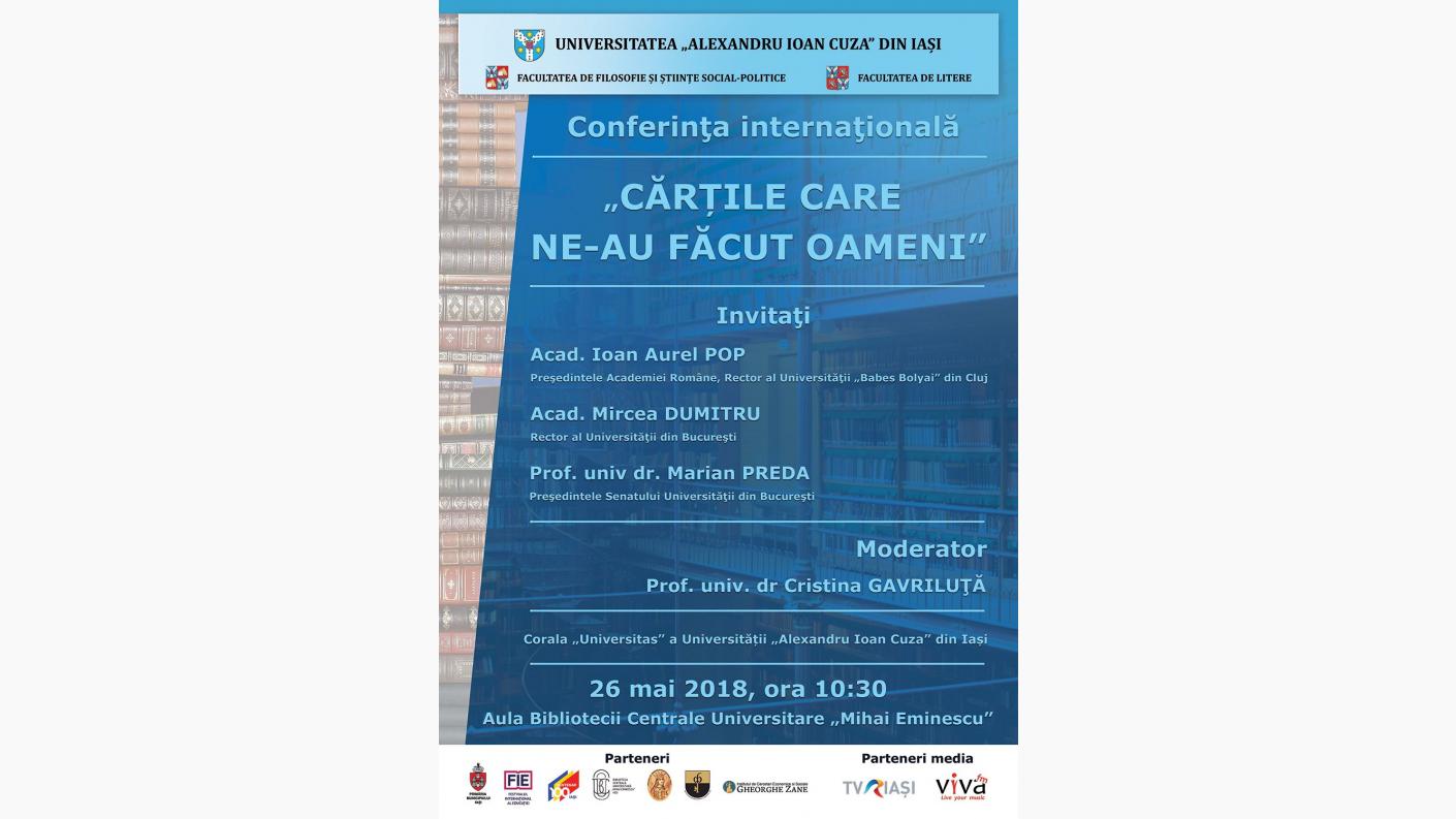Sâmbătă, 26 mai 2018, academicieni, profesori universitari din țară și străinătate și mai ales studenți de la Facultatea de Filosofie și Științe Social – Politice și facultatea de Litere din cadrul Universității „Alexandru Ioan Cuza” din Iași, au analizat și evocat rolul cărții în viața societății contemporane.