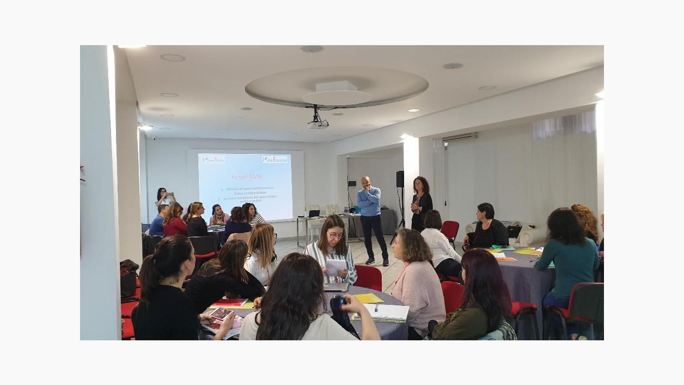 Timp de o săptămână asistenți sociali și reprezentanți ai celor trei țări participante au împărtășit experiențele profesionale și alături de formatori din cadrul Universității din Palermo și ai Asociației „Meta Emozioni”, au primit noi informații legate de: cunoașterea propriilor abilități, luarea deciziilor în instituții, rezolvarea problemelor prin creativitate, percepția propriilor stări interioare și a emoțiilor beneficiarilor, sinestezia emoțională, înțelegerea emoțiilor, gestionarea personală, gestionarea interpersonală, comunicarea asertivă și facilitarea. Toate aceste noțiuni au fost oferite de cadre didactice de la Universitatea din Palermo și diseminate de formatorii proiectului, psihologi, terapeuți și practicieni, în mai multe ateliere de lucru.