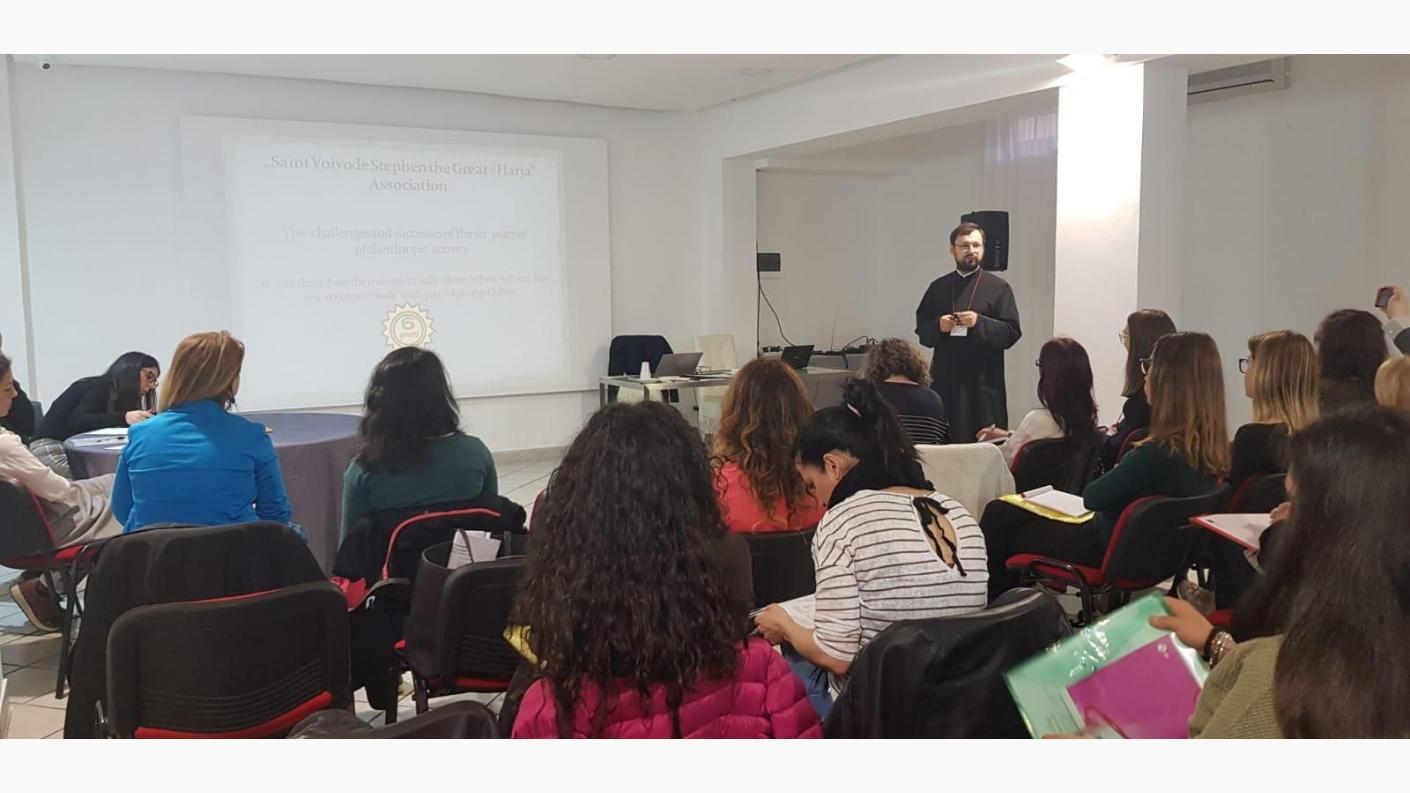 Delegatul Arhiepiscopiei Romanului și Bacăului a fost pr. Ilarion Mâță, Președintele Asociației „Sf. Voievod Ștefan cel Mare – Hârja, care a prezentat în general activitatea Federației, componența și specificul social și educațional al acesteia, cât și activitatea socio-medicală, administrativă și educațională a asociației de la Hârja.
