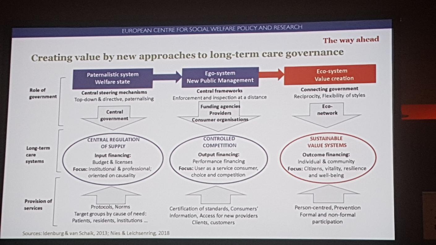 Conferința a continuat cu prezentările: ”The role of the European Commission in Long-term Care in Europe” (Rolul Comisiei Europene în îngrijirea pe termen lung în Europa); ”Should the European Union have an influence in LTC policies in Member States?” (Ar trebui ca Uniunea europeană să aibă o influență asupra îngrijirii pe termen lung din Statele Membre?) ; “EU Uniform Care” – The Way Ahead or a Hazard? (Îngrijirea uniformă în UE – Direcție viitoare sau hazard?); ”LTC in 2030 – European visions” (Îngrijirea pe termen lung 2030 – Viziunile europene) ; ”Residential and/or Ambulant Care” (Îngrijirea în sistem rezidențial și /sau ambulatoriu).