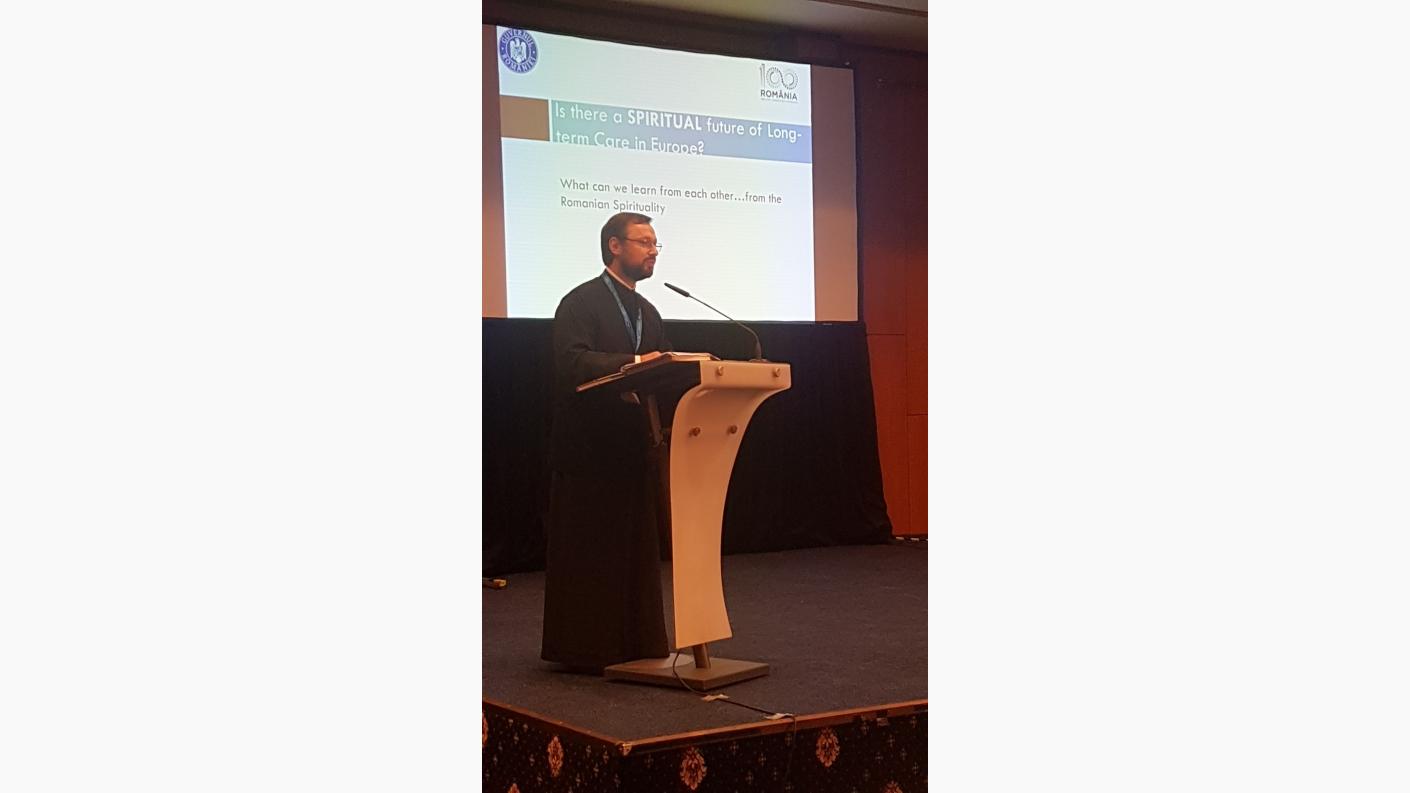 Pr. Ilarion a susținut în cea de a doua zi prezentarea cu tema „Long Term Care in Romania: Spirituality in eldery care homes” (Îngrijirea pe termen lung în România: Spiritualitatea în centrele pentru persoane vârstnice), în cadrul Secțiunii II – EU welfere state policies – can the clients see difference? (Politicile sociale ale statului privind calitatea vieții în UE).