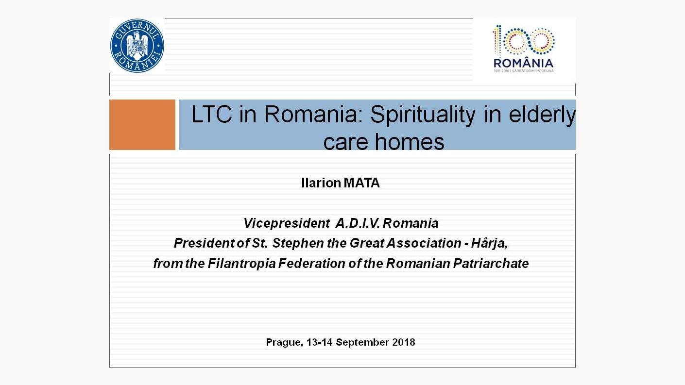 România a fost reprezentată de Pr. Ilarion Mâță, Președintele Asociației „Sf. Voievod Ștefan cel Mare – Hârja”, Vicepreședinte al Asociației Naționale a Directorilor Instituțiilor pentru Vârstnici (ADIV) România și Inspector eparhial la Sectorul Social – Filantropic al Arhiepiscopiei Romanului și Bacăului.