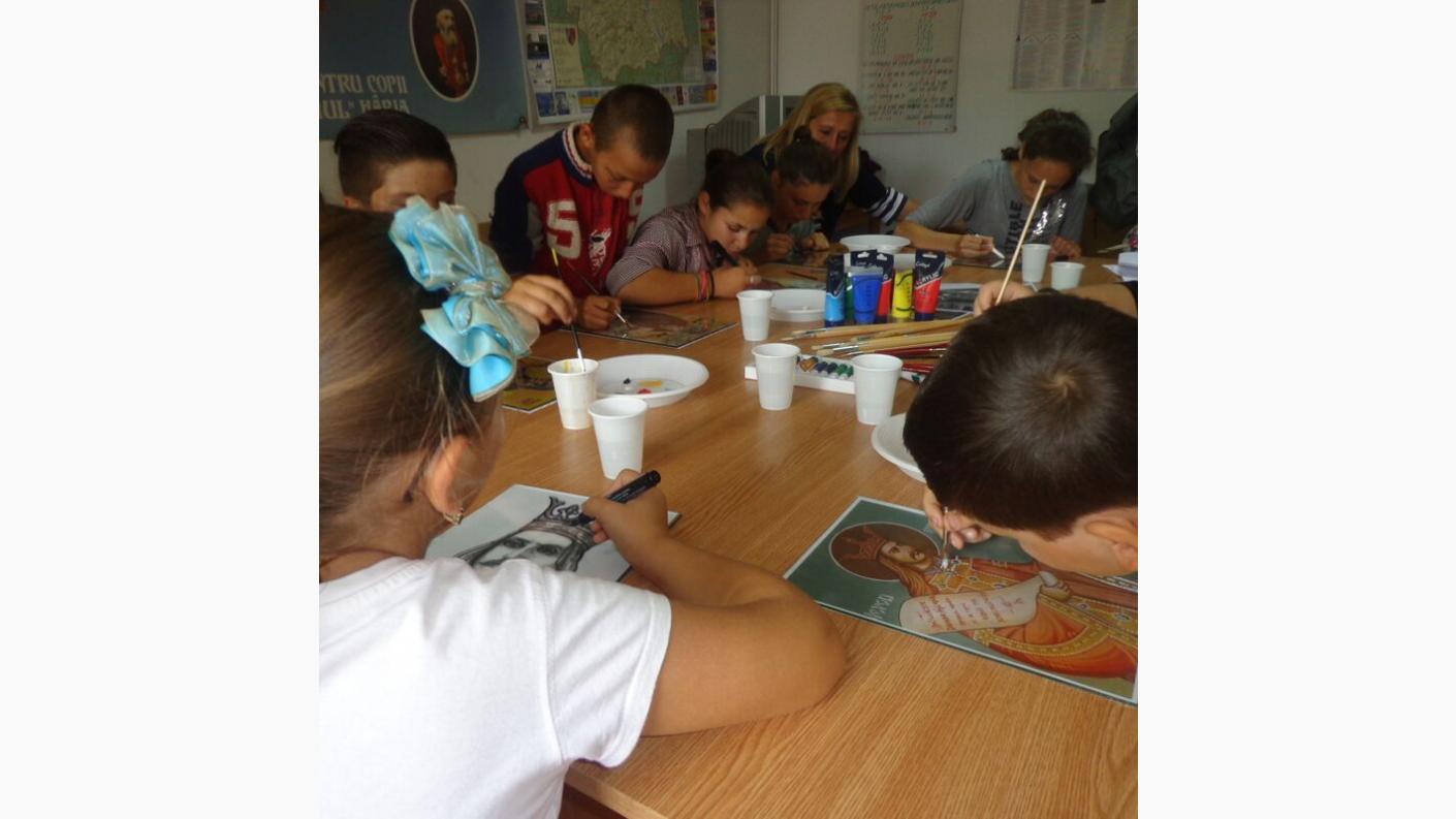 Copiii și-au continuat activitățile în sala de socializare, împreună cu doamna Alina Piștea, coordonator al atelierului de pictură de la Centrul de zi, alături de care au realizat icoane pe sticlă reprezentând portretul Sf. Voievod și a unor biserici și mănăstiri ctitorite de acesta.