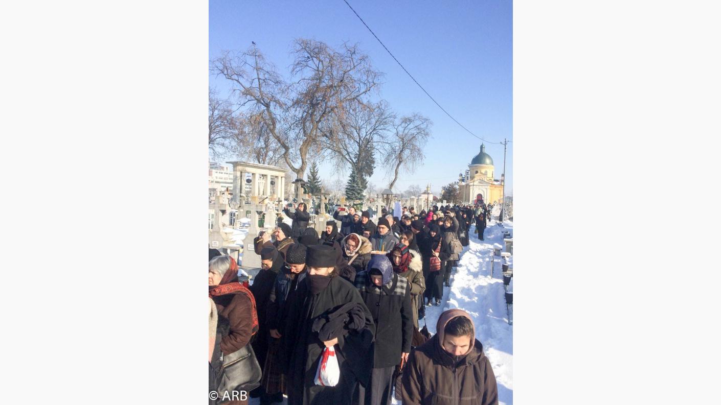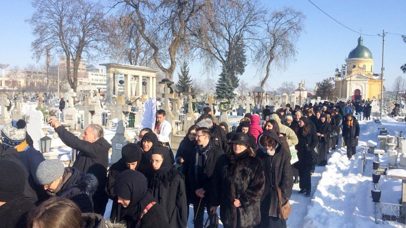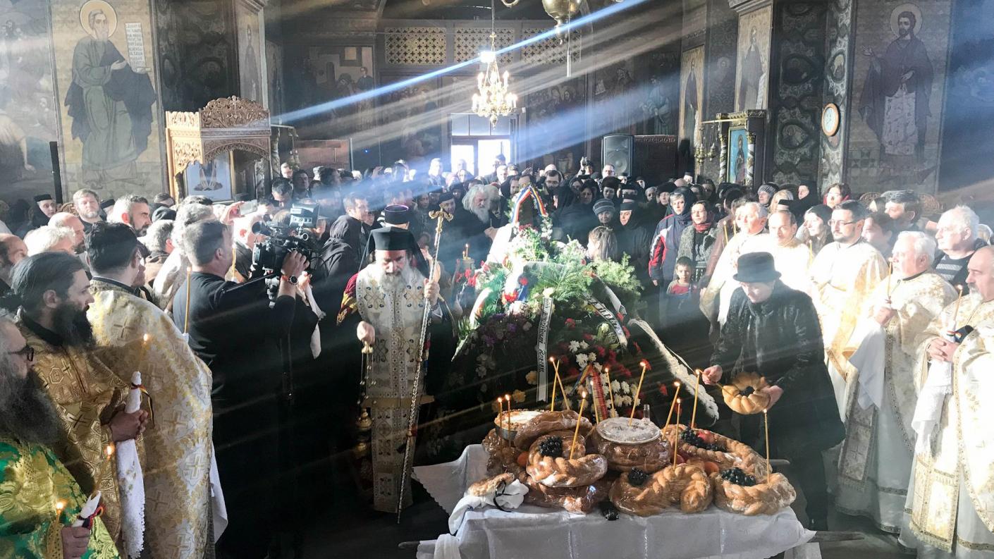 Apoi, Înaltpreasfințitul Părinte Ioachim, Arhiepiscopul Romanului și Bacăului, dimpreună cu un impresionat sobor de ieromonahi și preoți, a oficiat slujba de înmormântare, în prezența membrilor familiei îndoliate, a prietenilor, a numeroși pelerini, călugări, monahii și credincioși sosiți la Roman din toată țara.