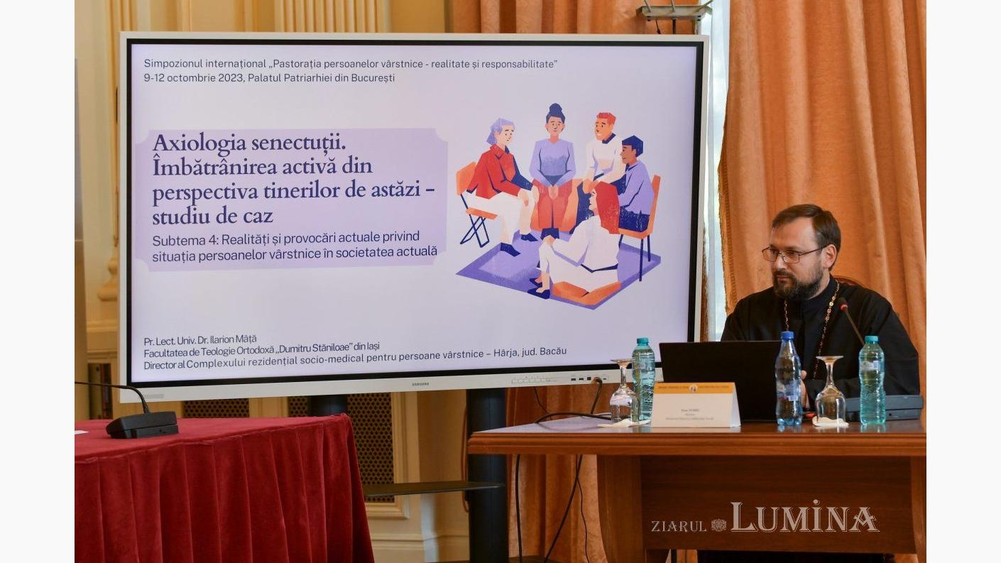 Arhiepiscopia Romanului și Bacăului, cu binecuvântarea Înaltpreasfințitului Părinte Ioachim, a fost reprezentată de Pr. Ilarion Mâță, Consilier eparhial la Sectorul Social-Filantropic și Misionar, care a prezentat lucrarea Axiologia senectuții. Îmbătrânirea activă din perspectiva tinerilor de astăzi - studiu de caz cu următoarele aspecte: Îngrijirea de lungă durată – concept, obiective și prorități naționale; Persoana Vârstnică și nevoile ei, o prioritate pentru Biserica Ortodoxă Română; Asistenţa socială şi psihologică a persoanelor vârstnice; Îmbătrânirea și consecințele degenerescenței omului; Studii de caz: De ce ne este teamă să îmbătrânim?– Axiologia senectuții; Îmbătrânirea activă din perspectiva seniorilor; Complexul de servicii sociale pentru vârstnici Hârja – un posibil model de bună practică.