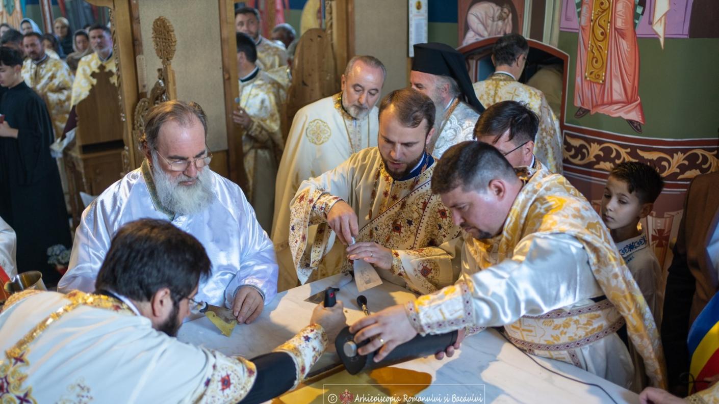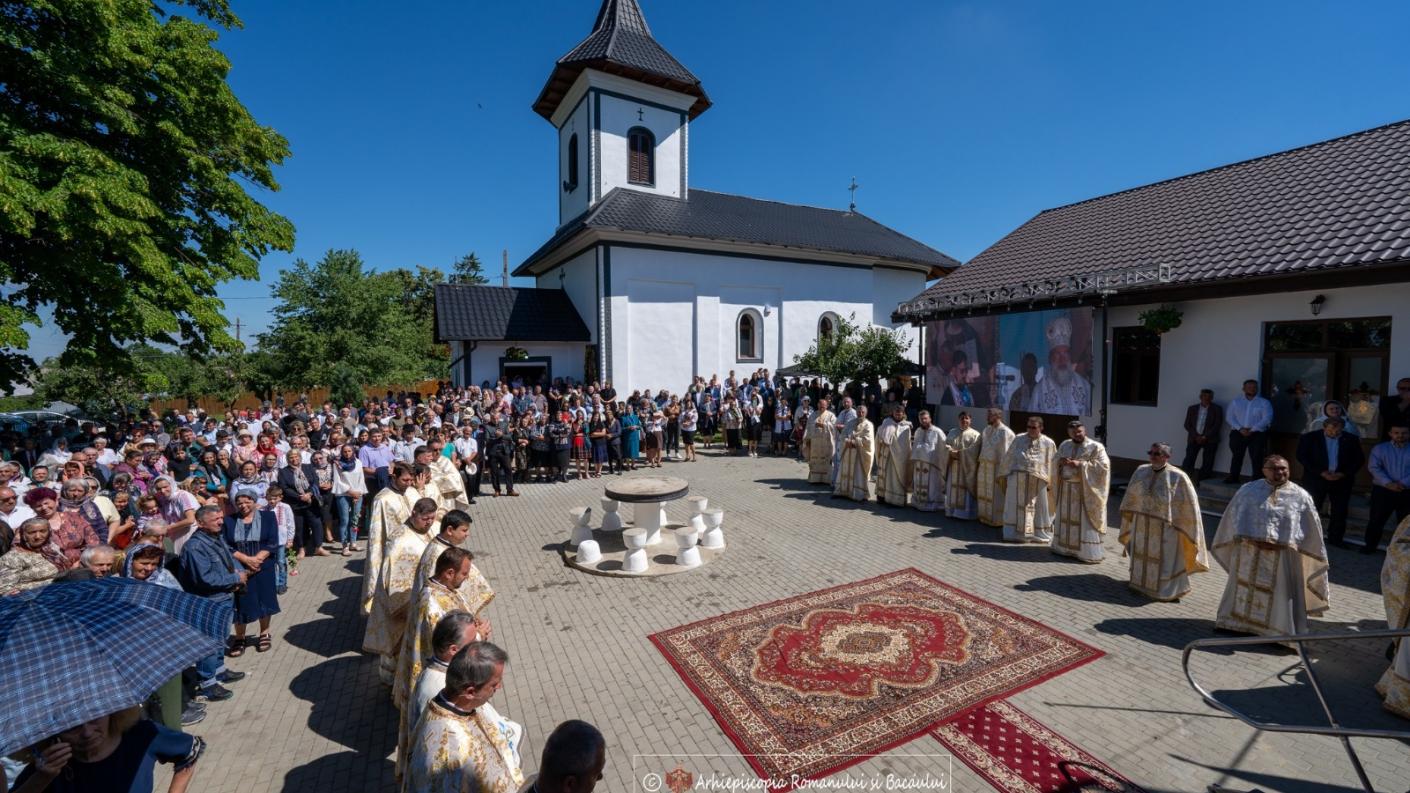 După săvârșirea Sfintei Liturghii, Înaltpreasfințitul Părinte Ioachim și soborul slujitorilor, în sunet de clopot, au înconjurat lăcașul de cult citind pericopele evanghelice specifice și însemnând la exterior cu Sfântul și Marele Mir, în semnul Sfinte Cruci, cele patru laturi ale edificiului. Apoi, a fost sfințit altarul și pictura murală, oferindu-se credincioșilor posibilitatea de a se închina sfintelor moaște ale Sfântului Teodosie de la Brazi, Episcopul Romanului, așezate în piciorul Sfintei Mese. Lucrările de reabilitare a sfântului lăcaș s-au derulat de-a lungul a cinci ani (2019-2024) și au constat în schimbarea integrală a acoperișului, decaparea pereților și tencuirea din nou, consolidarea temeliei și placarea cu piatră naturală. La interiorul edificiului s-au realizat lucrări de consolidare, decapare și tencuire a pereților, armare cu plasă de Buzău, refacerea instalației electrice și pictarea din nou în tehnica „al seco”, de către pictorul Constantin Prisecariu. A fost introdus sistemul de încălzire în pardoseala placată cu marmură, s-a achiziționat mobilier bisericesc și s-a confecționat o nouă catapeteasmă din lemn de stejar, iar în Sfântul Altar a fost refăcută Sfânta Masă, aceasta fiind placată cu marmură. De asemenea, sfântul lăcaș a fost înfrumusețat cu icoane, obiecte și podoabe de cult.