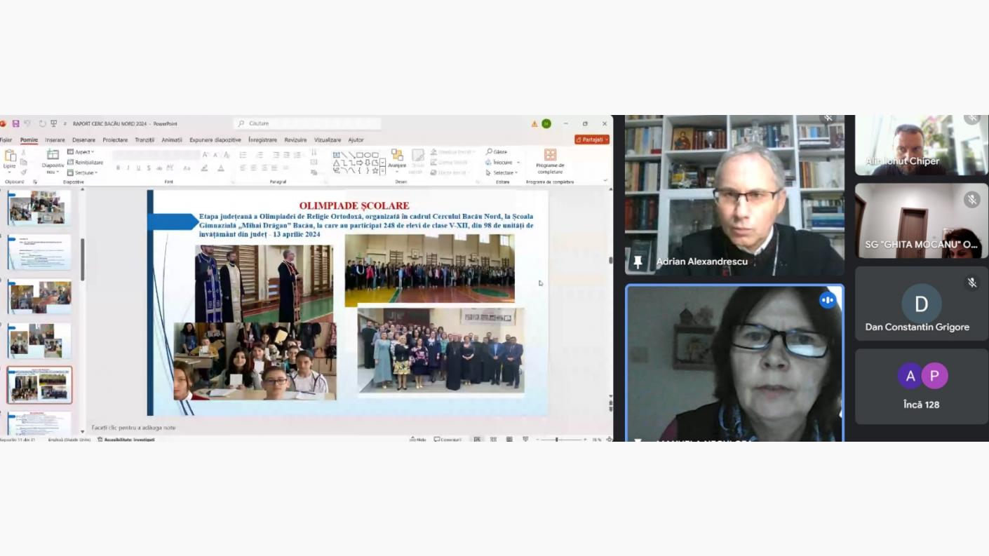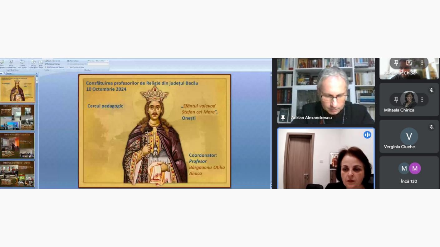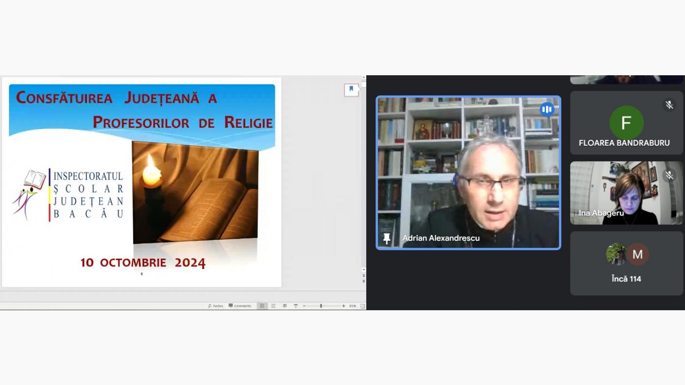 Consfătuirea anuală a profesorilor pentru disciplina Religie din județul Bacău s-a desfășurat anul acesta, cu binecuvântarea și în prezența Înaltpreasfințitului Părinte Ioachim, Arhiepiscopul Romanului și Bacăului, joi, 10 octombrie 2024, în sistem online.